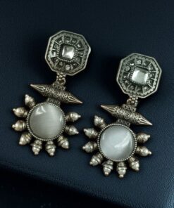 Each Silver Replica Earrings features a stunning Monalisa Stone, renowned for its captivating iridescence and unique beauty, adding a touch of opulence to your ensemble. The intricate silver replica design enhances the vintage appeal, reminiscent of bygone eras of glamour and luxury.