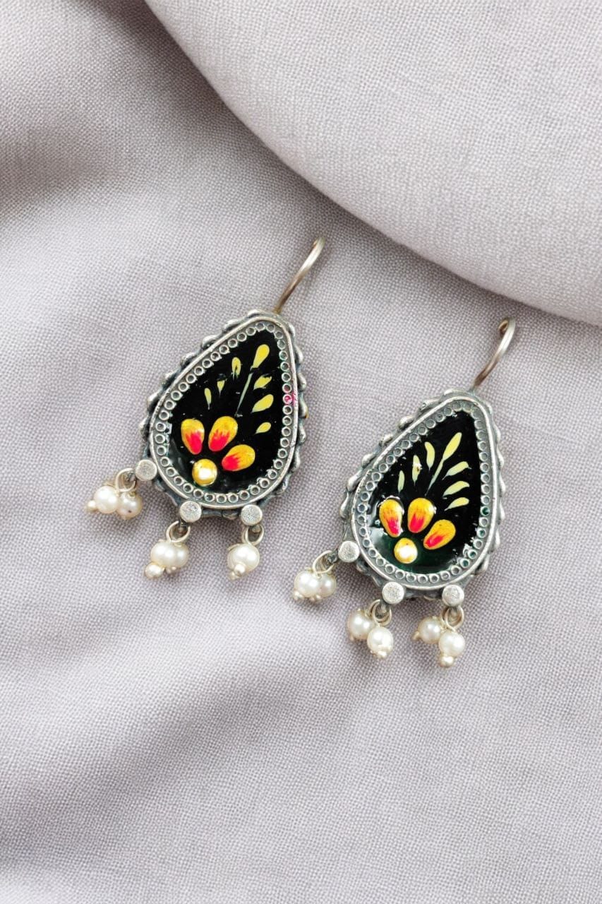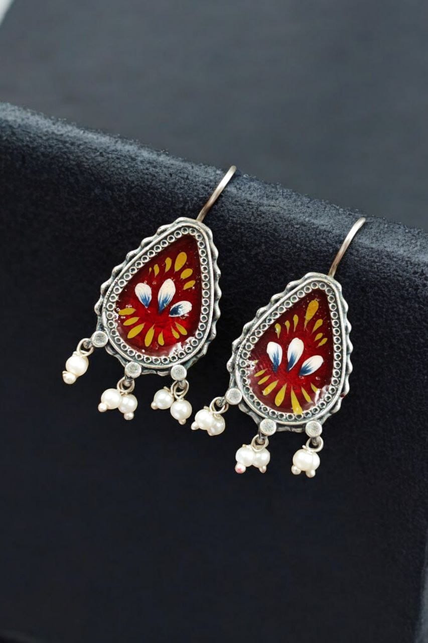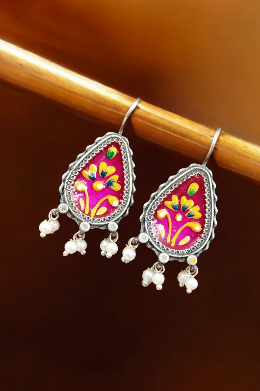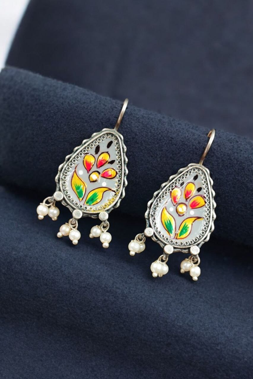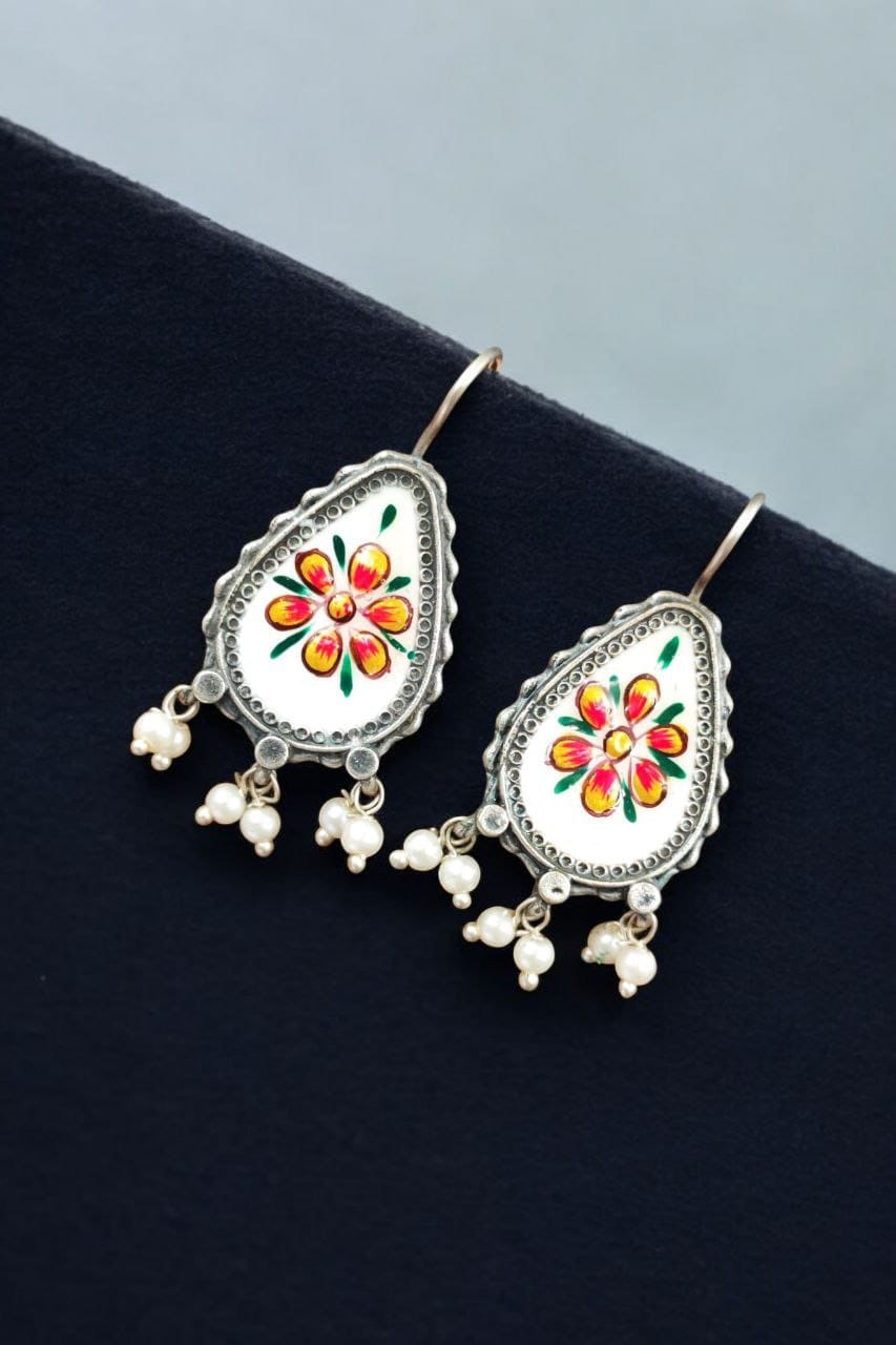 Silver Replica Hand-painted Earrings – Unique Dangler Hook Style Jewellery