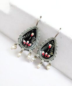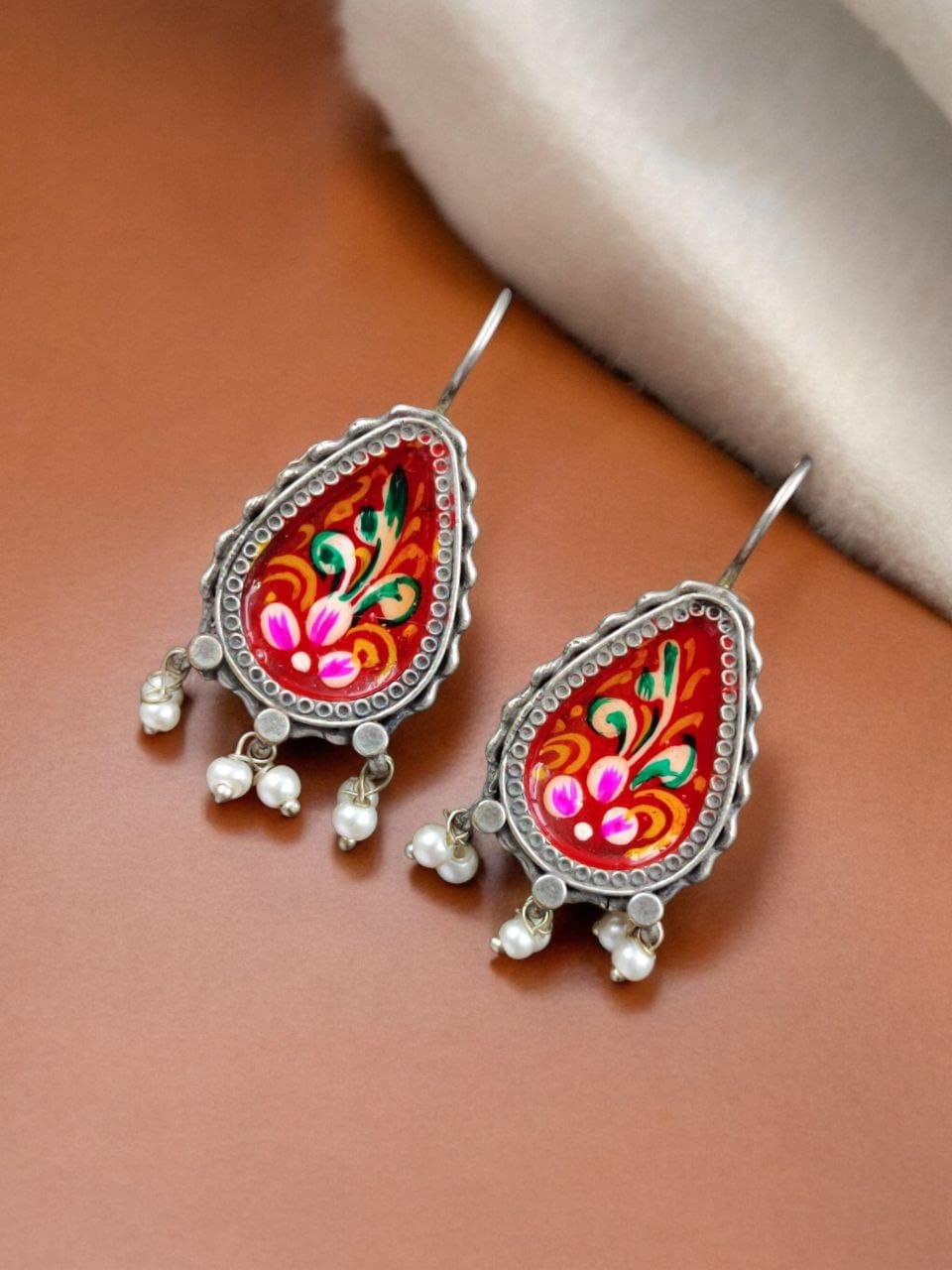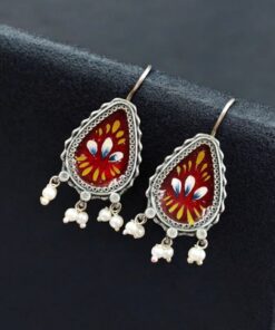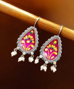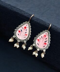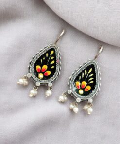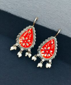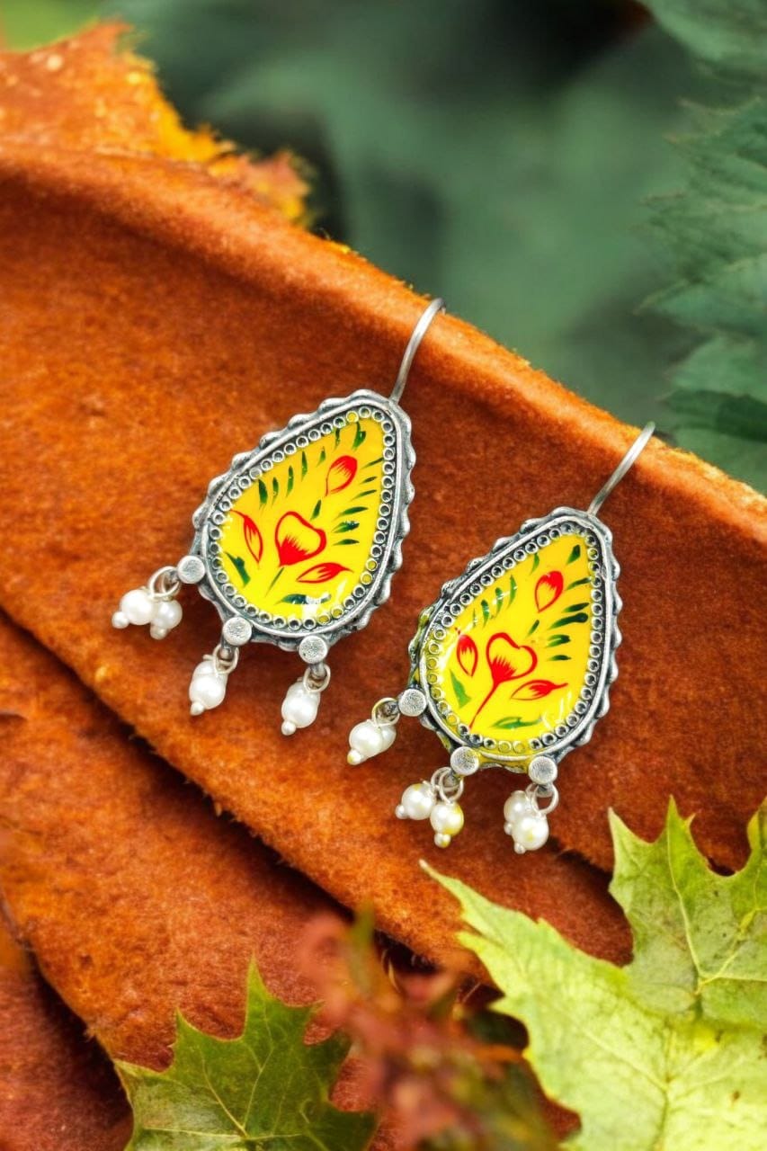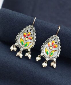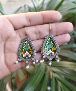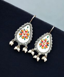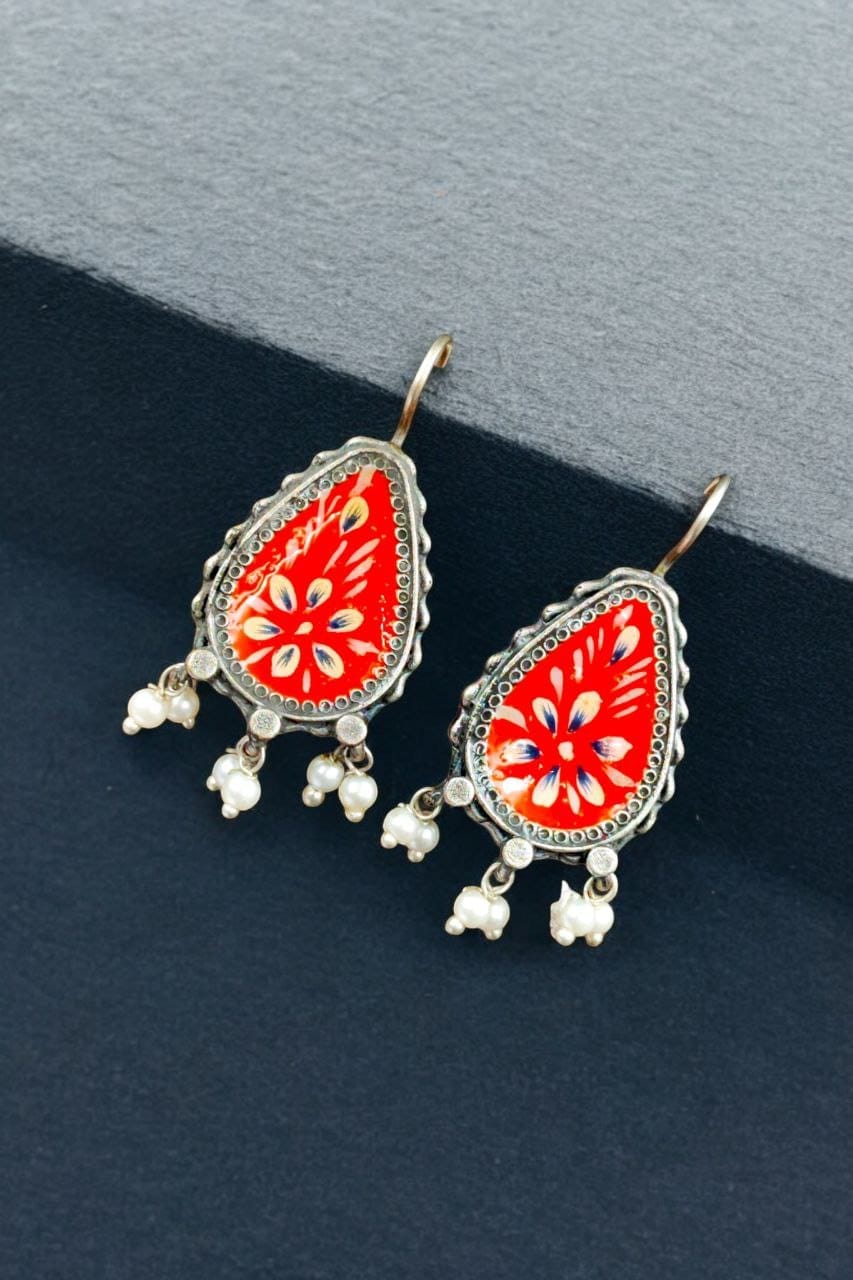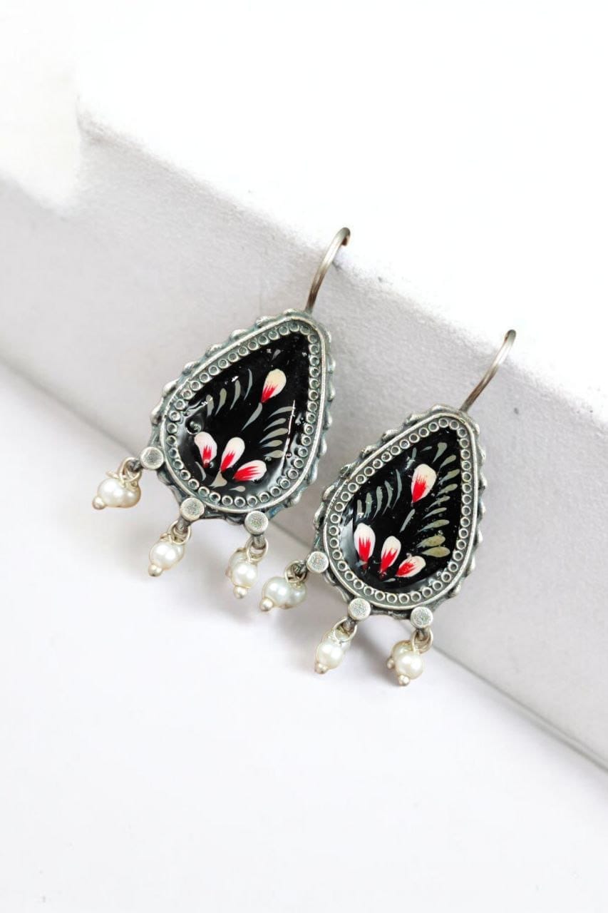 Silver Replica Hand-painted Earrings – Unique Dangler Hook Style Jewellery