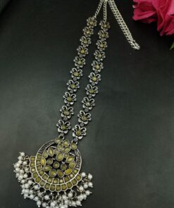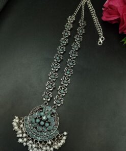 This elegant stone and pearl necklace also makes a thoughtful gifting option for birthdays, anniversaries, festivals, or special occasions. Its classic design and premium finish make it a meaningful gift for women and girls who love traditional and oxidized jewelry. Easy to maintain and timeless in appeal, this necklace remains a staple accessory season after season.