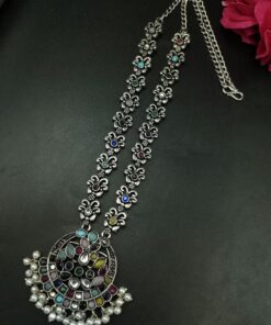 Designed to complement a wide range of outfits, this silver replica oxidized necklace pairs beautifully with sarees, kurtis, lehengas, and Indo-western attire. Whether you are attending a festive celebration, wedding function, cultural event, or casual gathering, it adds elegance and completes your look with ease. Its versatile style allows it to be worn alone as a statement piece or layered with other necklaces for a more contemporary appearance.