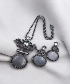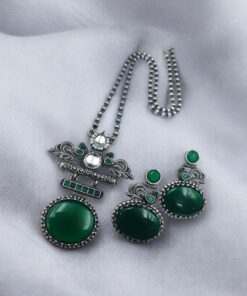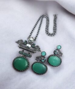 Elevate your jewelry collection with our Silver Replica Pendant Set, a piece that embodies the perfect blend of tradition, style, and elegance. Order now and experience the timeless beauty of peacock design and Monalisa stone jewelry!