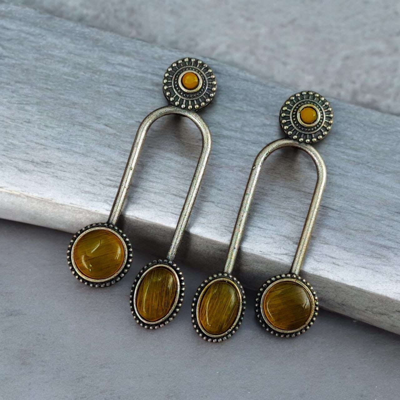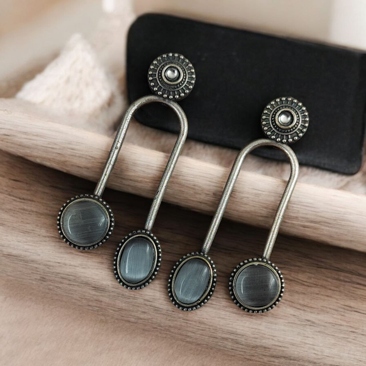 At the heart of these earrings lies the captivating beauty of Silver Replica Stone Earrings. Known for their shimmering appearance and unique patterns, the Monalisa stones used in these studs radiate an enchanting aura that catches the eye. The soft, glowing hues of the stones provide a subtle yet stylish contrast to the oxidized silver finish, making these earrings a standout piece in any jewelry collection.