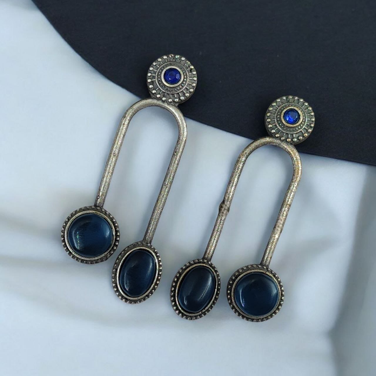 The oxidized silver finish of these earrings adds a vintage touch to the overall design, creating a timeless appeal. The intricate detailing of the metalwork reflects traditional craftsmanship, while the oxidized finish gives it an antique-inspired look. Whether you’re attending a festive event or a casual outing, these earrings offer the perfect blend of heritage and contemporary fashion.
