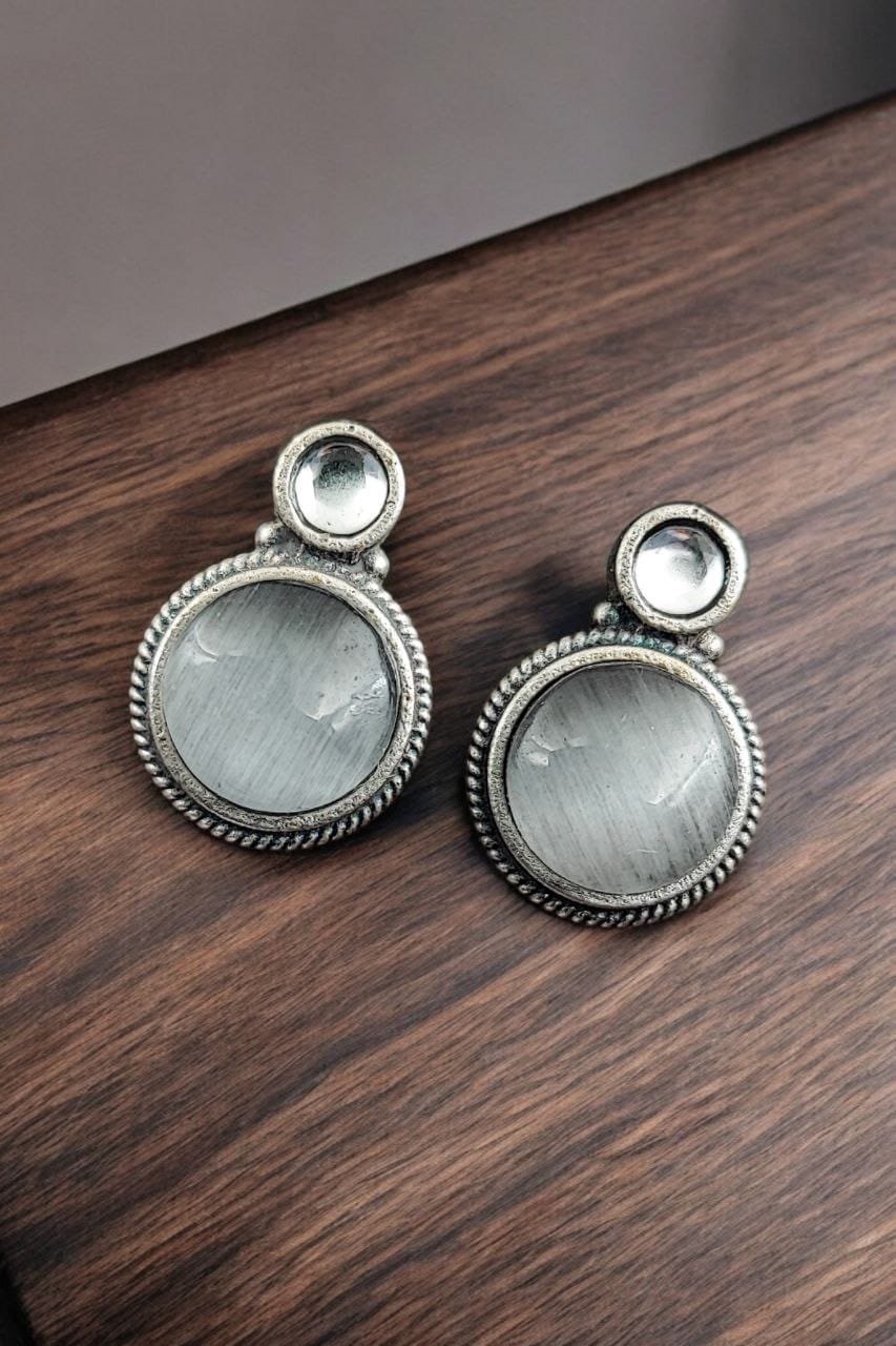 Upgrade your jewelry collection with these stunning Silver Replica Monalisa Stone Studs and experience the charm of antique-inspired elegance every day.