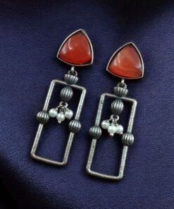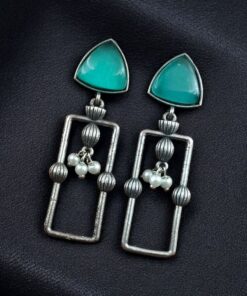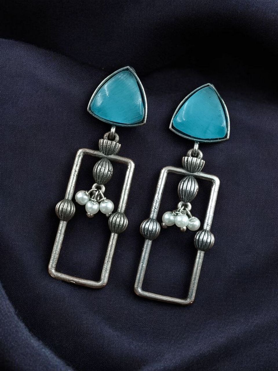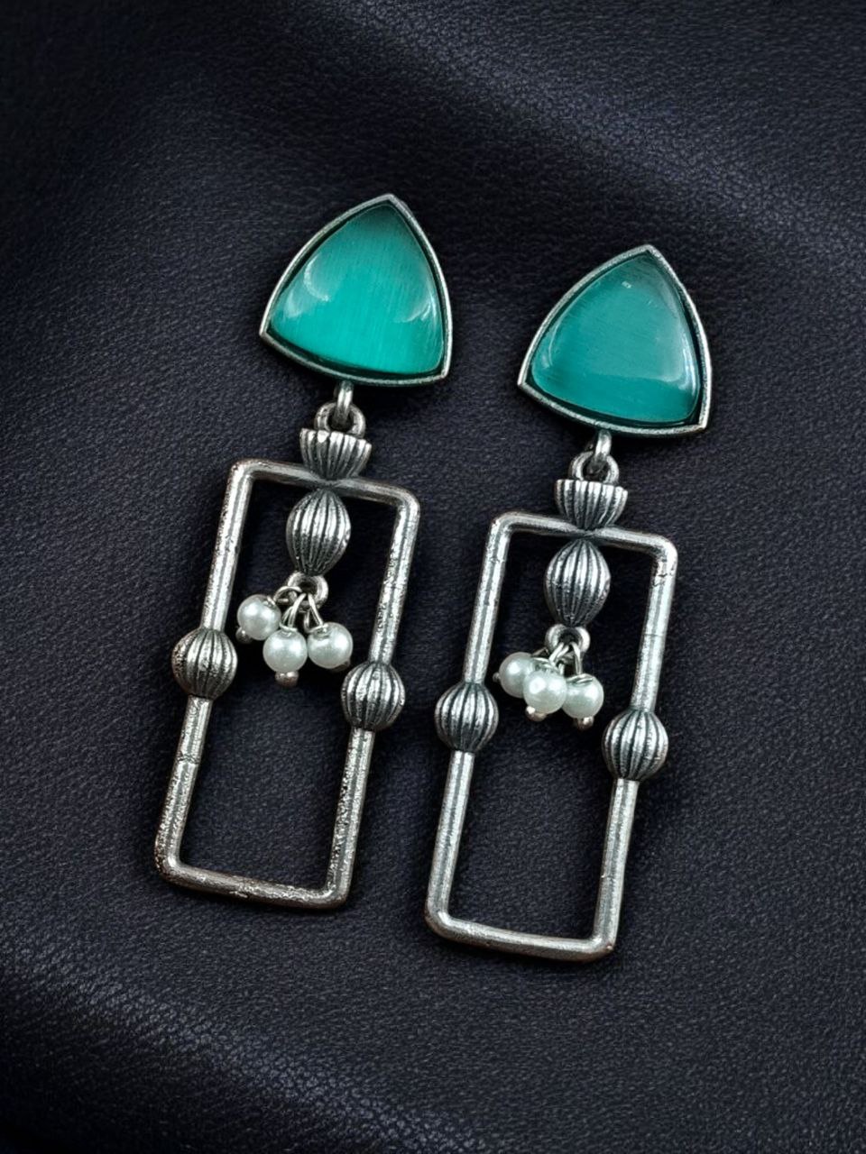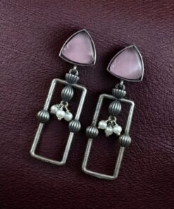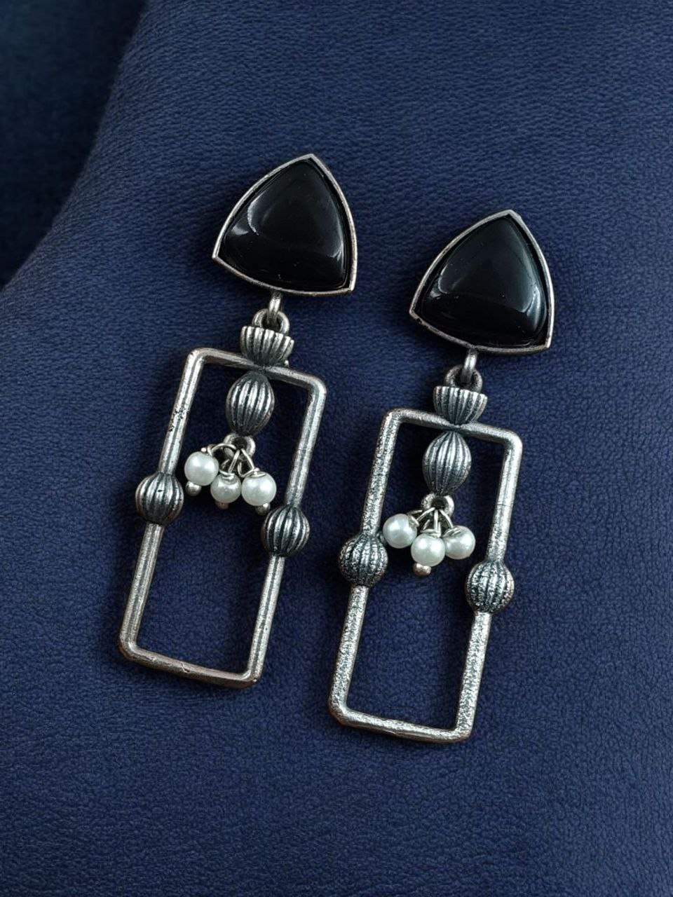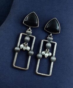 Statement Geometric Dangler Earrings with Pearl Work | Antique Silver Finish Oxidized Unique Jewelry