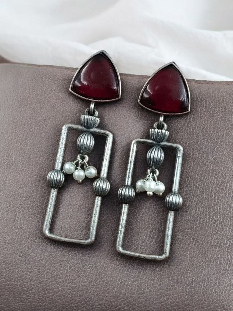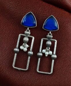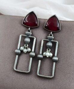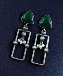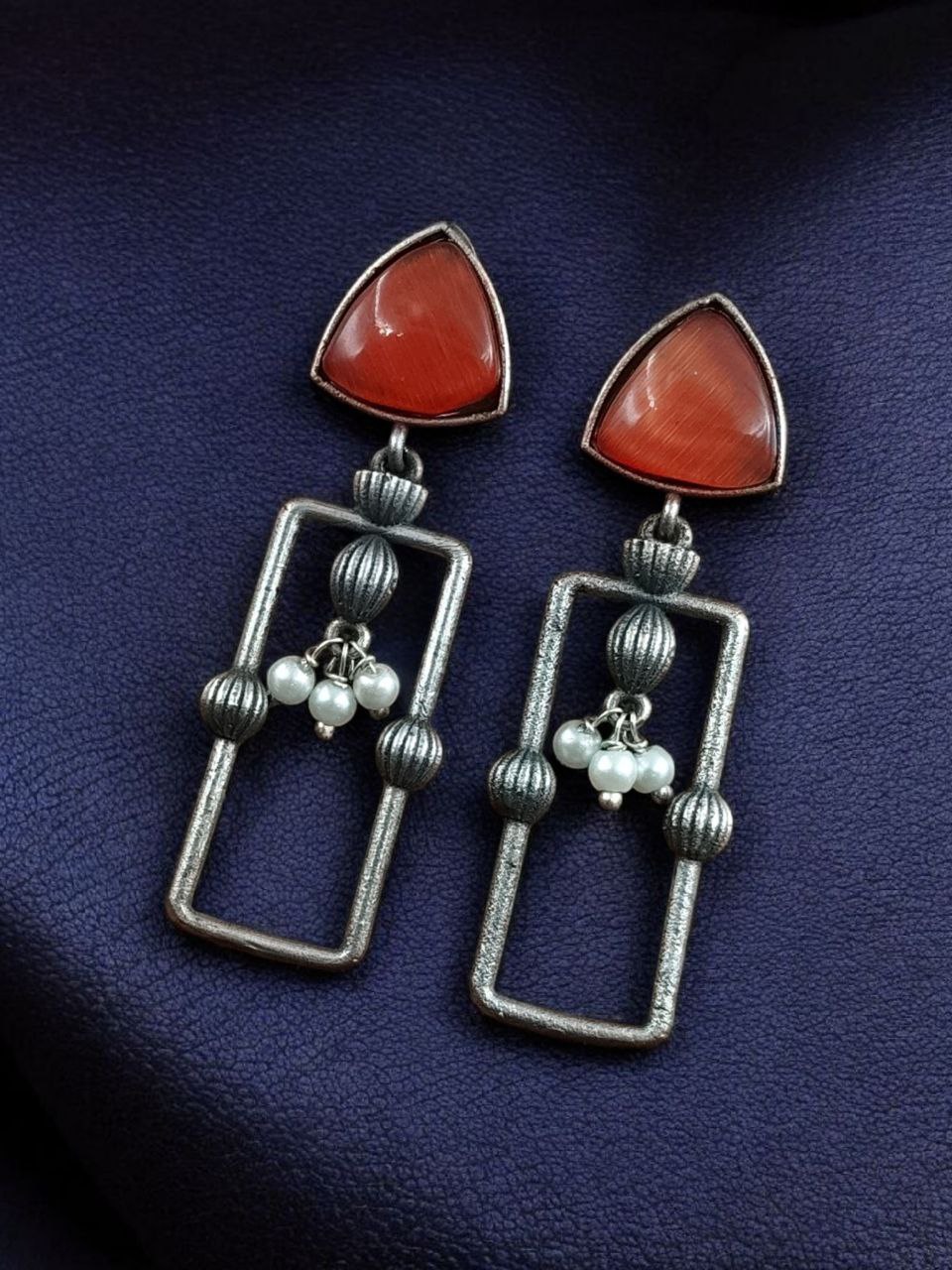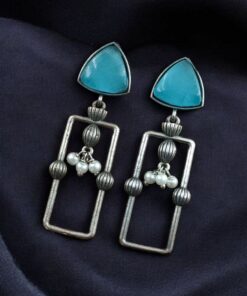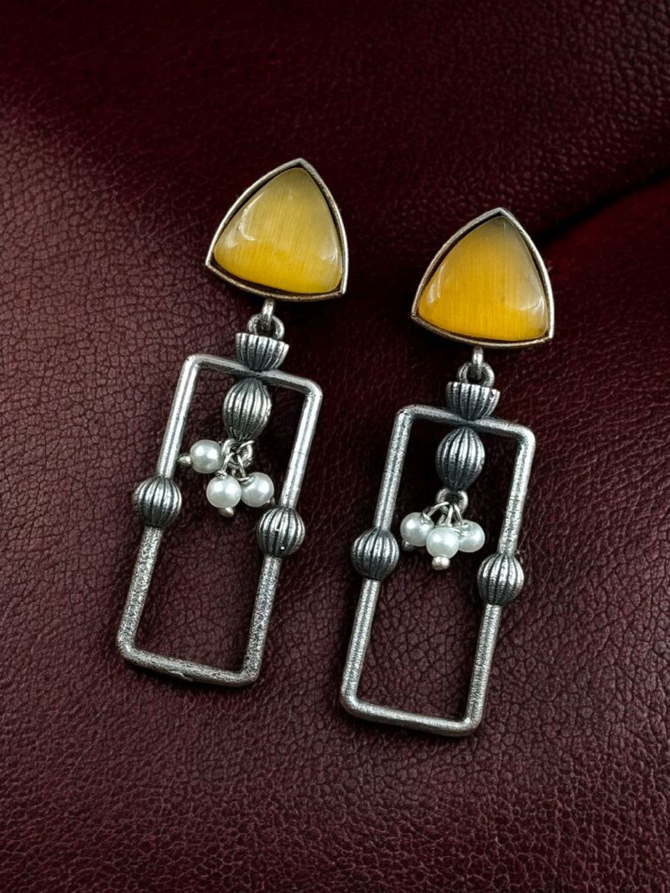 Statement Geometric Dangler Earrings with Pearl Work | Antique Silver Finish Oxidized Unique Jewelry