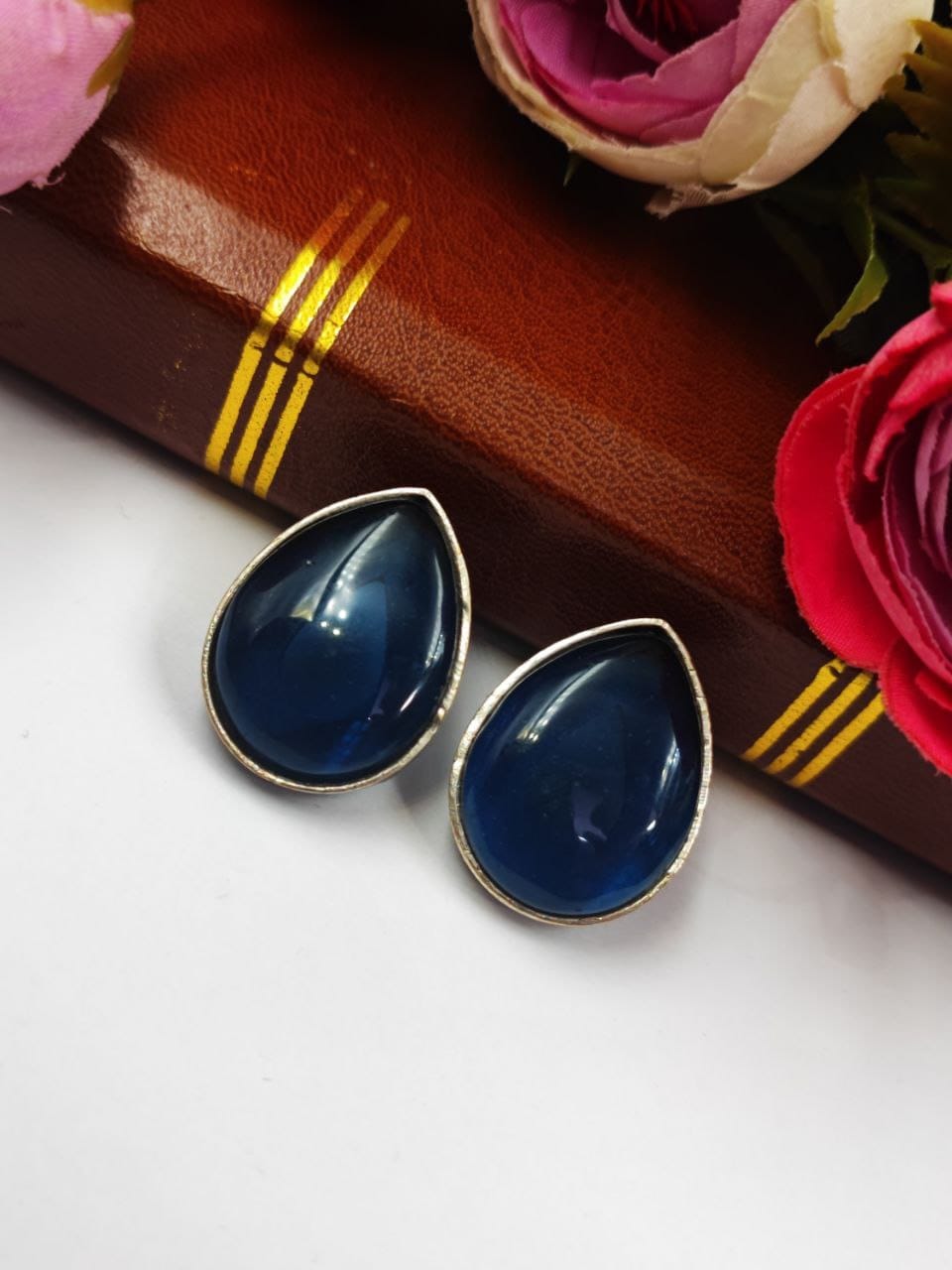 Stone Stud Earrings | Silver Replica Monalisa Earring | Casual Wear Jewelry