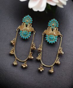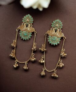 Peacock Kashmiri Earrings are a beautiful blend of traditional artistry and royal elegance. Inspired by the majestic peacock motif and the rich cultural heritage of Kashmir, these earrings are designed to make every woman feel graceful and confident. The intricate detailing reflects fine craftsmanship, making them a perfect accessory for festive occasions, weddings, and cultural celebrations. Their eye-catching design instantly enhances both ethnic and fusion outfits.