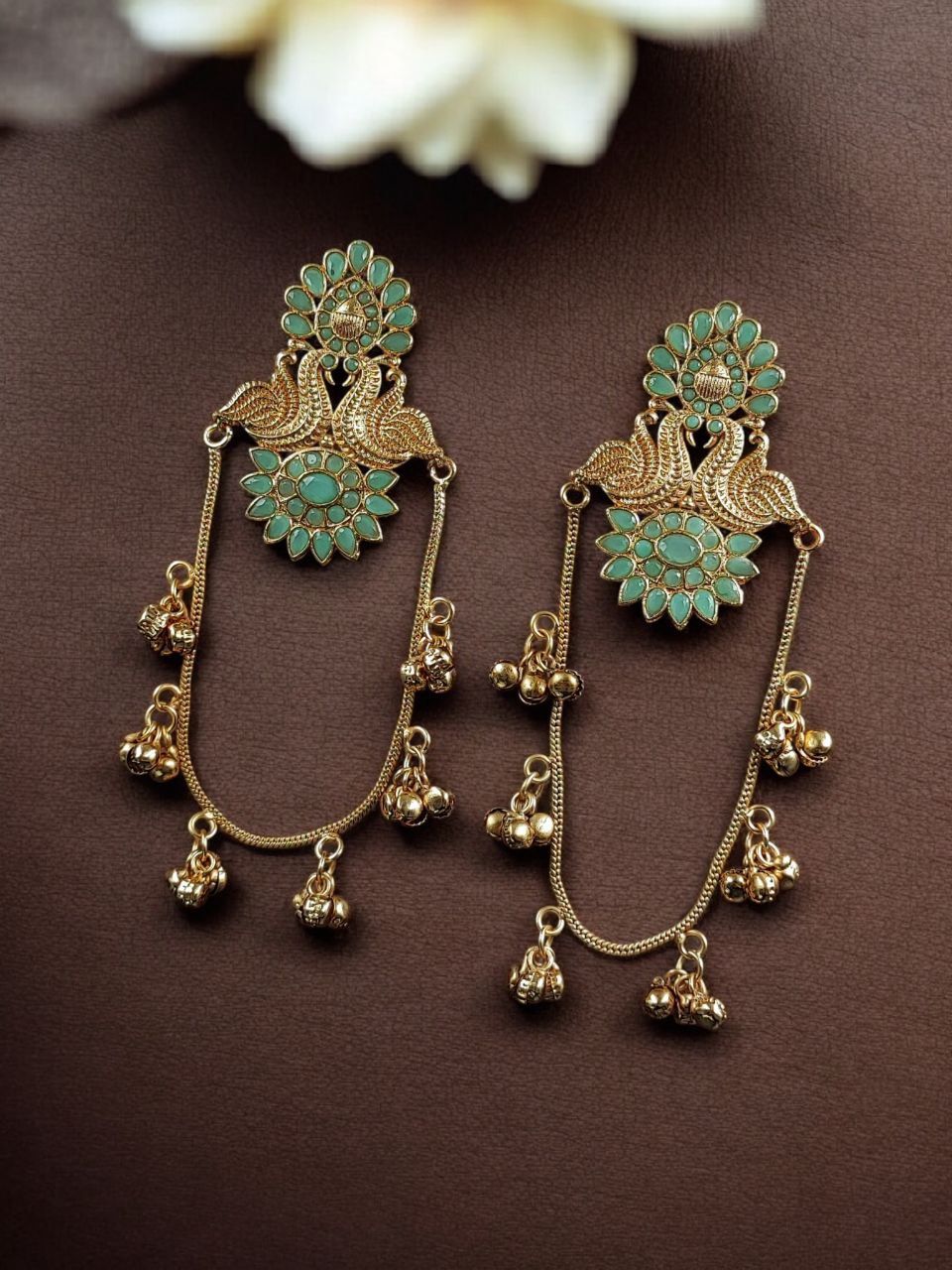 Lightweight yet impactful, these Peacock Kashmiri Earrings are comfortable for long wear during weddings, parties, and festive gatherings. The balanced design ensures they sit perfectly on the ears without causing discomfort. The fine detailing and artistic finish make them suitable for women who appreciate traditional craftsmanship with a modern touch. They are an ideal choice for bridesmaids, wedding guests, or anyone looking to elevate their ethnic jewelry collection.
