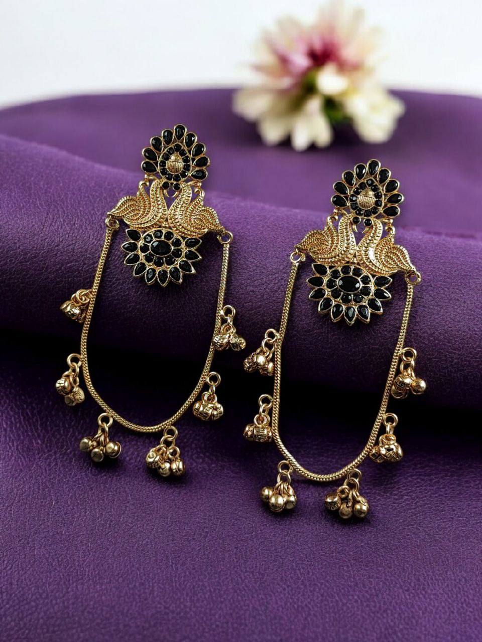 Add timeless elegance to your jewelry box with these Peacock Kashmiri Earrings from D9creation. Their royal design, premium craftsmanship, and versatile styling make them a must-have accessory. Whether you are attending a grand celebration or a festive family event, these earrings will effortlessly enhance your overall appearance and leave a lasting impression.