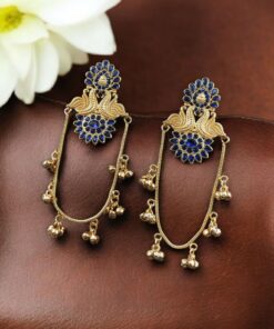 Crafted with high-quality brass, these Peacock Kashmiri Earrings offer durability along with a premium finish. The elegant polish gives them a luxurious shine while maintaining a traditional appeal. The detailed peacock carving symbolizes beauty and pride, making these earrings not just a piece of jewelry but a statement of style. Whether paired with sarees, lehengas, or designer suits, they create a sophisticated and charming look.
