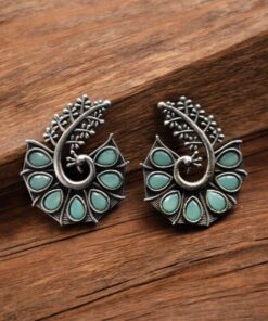 Made from high-quality materials, these silver replica stud earrings feature an oxidized polish that provides a long-lasting vintage appeal. The stone work earrings are designed to be durable and skin-friendly, ensuring a perfect blend of elegance and comfort.