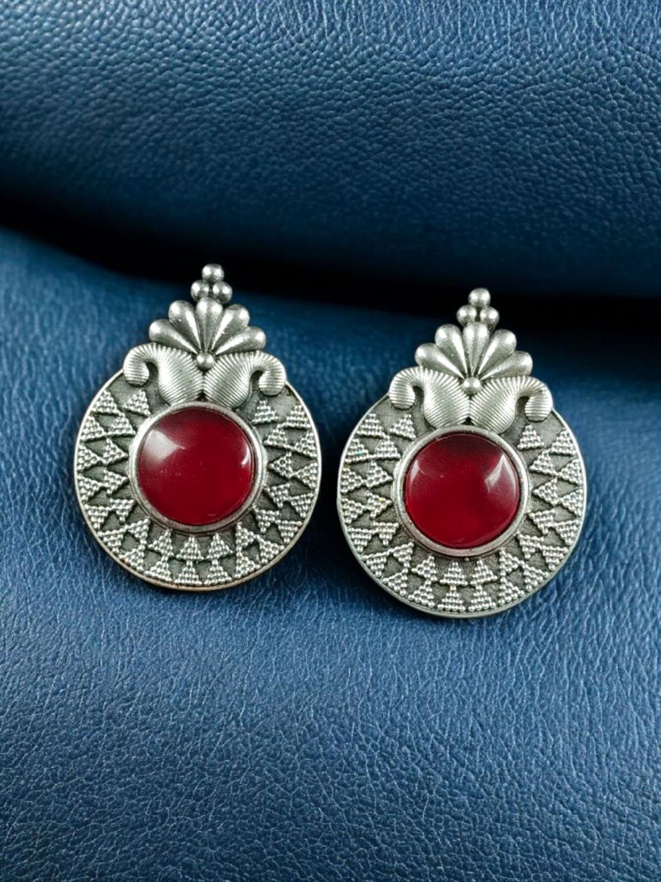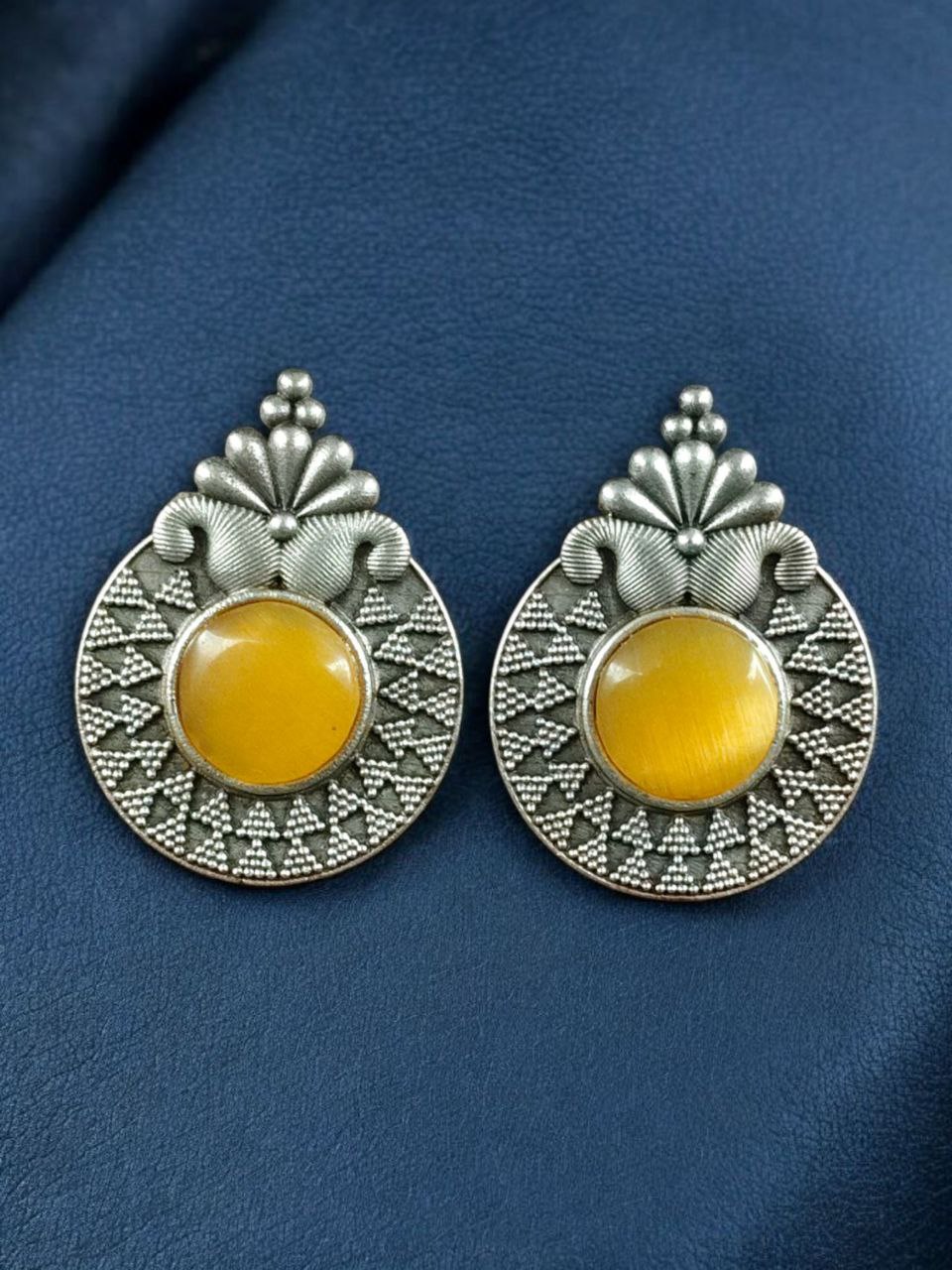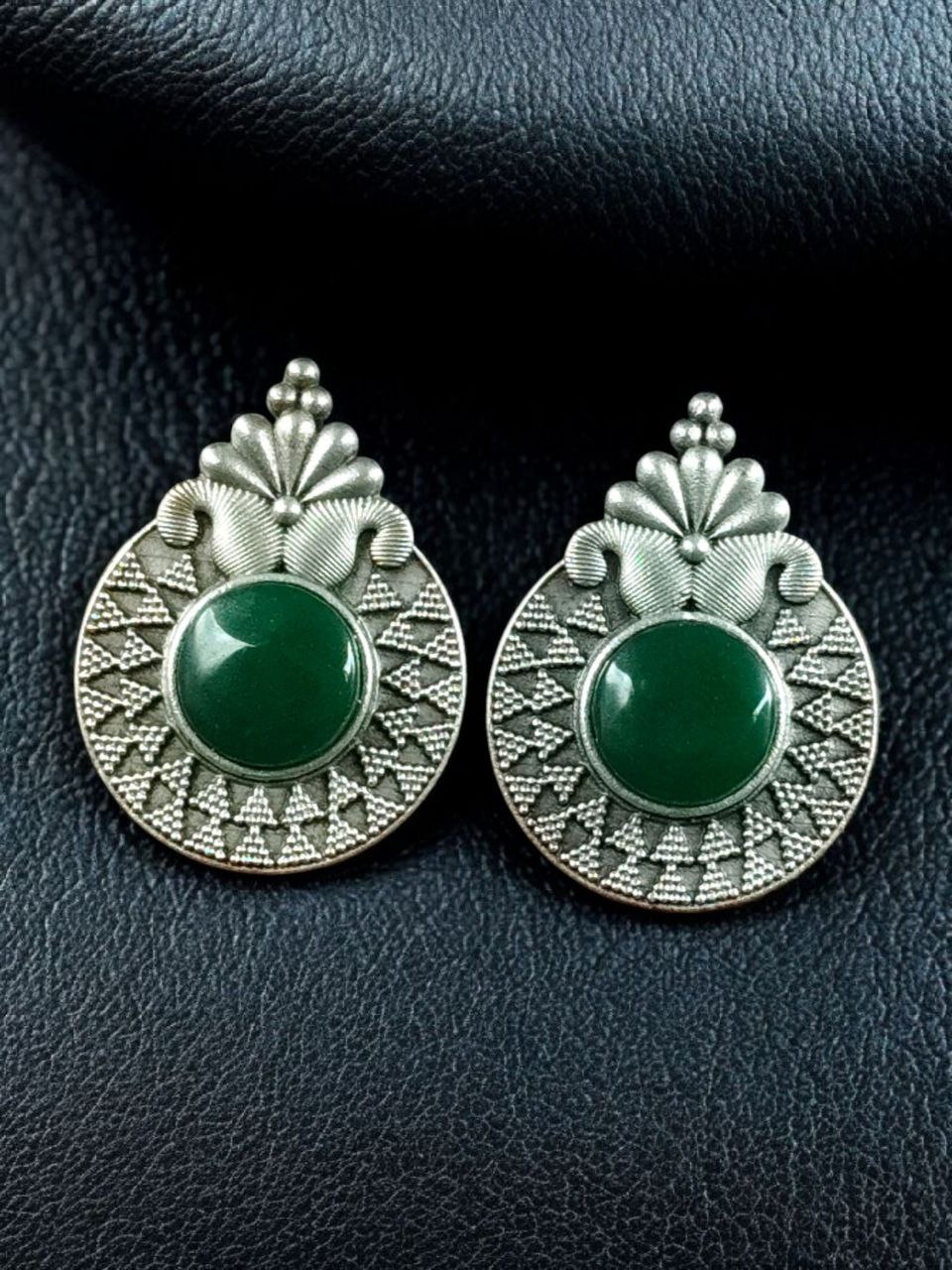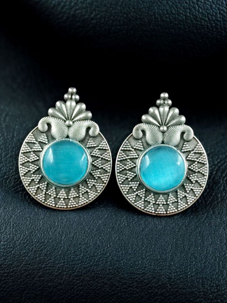 Elevate your accessory collection with these Stylish Oxidized Stud Earrings, beautifully designed with premium silver replica detailing and a stunning Monalisa stone centerpiece. These Oxidized Stud Earrings perfectly blend elegance, modern charm, and traditional craftsmanship, making them the ideal jewelry choice for both casual outings and party wear.