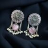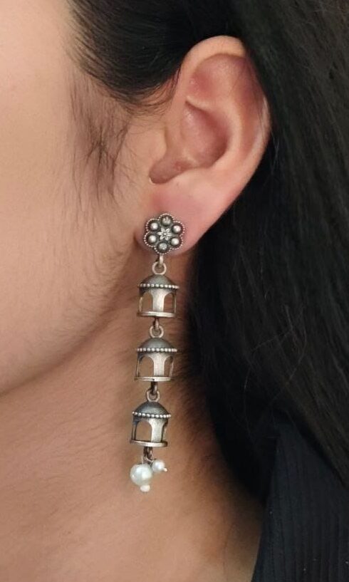 Traditional 3-Layer Beautiful Pearl Temple Earrings in Silver Replica Finish