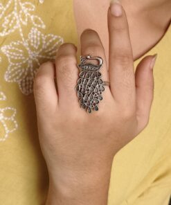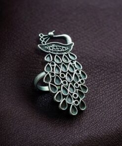Handcrafted with precision, the ring showcases intricate oxidized detailing that highlights every feather and curve of the peacock design. The premium silver replica finish adds a classic antique touch, giving the ring a luxurious yet traditional look. Whether worn alone as a statement piece or paired with matching oxidized jewelry, this ring instantly elevates your style.