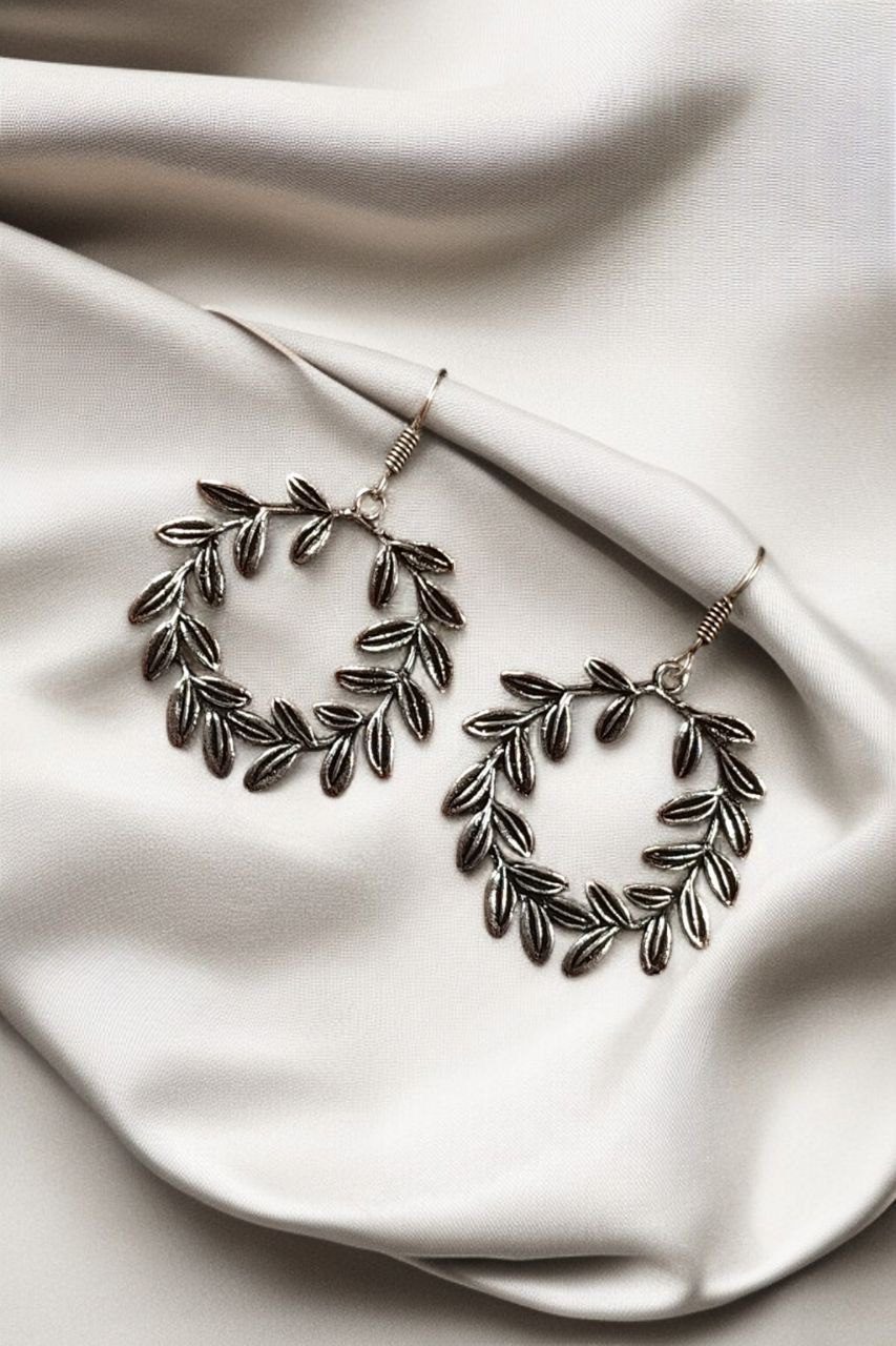 Crafted from high-quality German silver, these leaf hook earrings showcase an intricately carved leaf motif that symbolizes growth, grace, and natural beauty. The detailed design and antique silver finish give them a rustic yet refined appearance, making them suitable for both casual and semi-formal occasions.