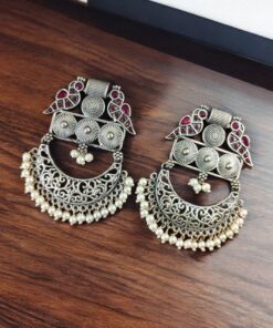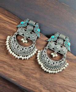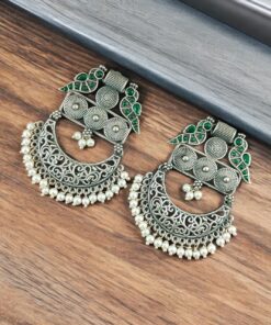 These Bird Style Earrings showcase meticulously hand-set stones that sparkle with every movement, offering a dazzling play of light and color. The vibrant stones are carefully chosen to complement the intricate bird design, enhancing the earrings’ traditional allure. The stonework adds a sophisticated touch, ideal for both daytime wear and special evening occasions. This blend of artistry and elegance ensures these danglers make a memorable impression, elevating any look with their unique design and refined sparkle.