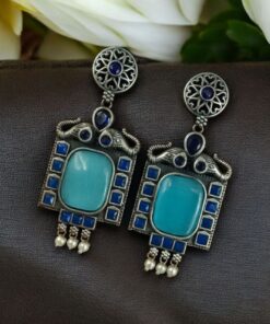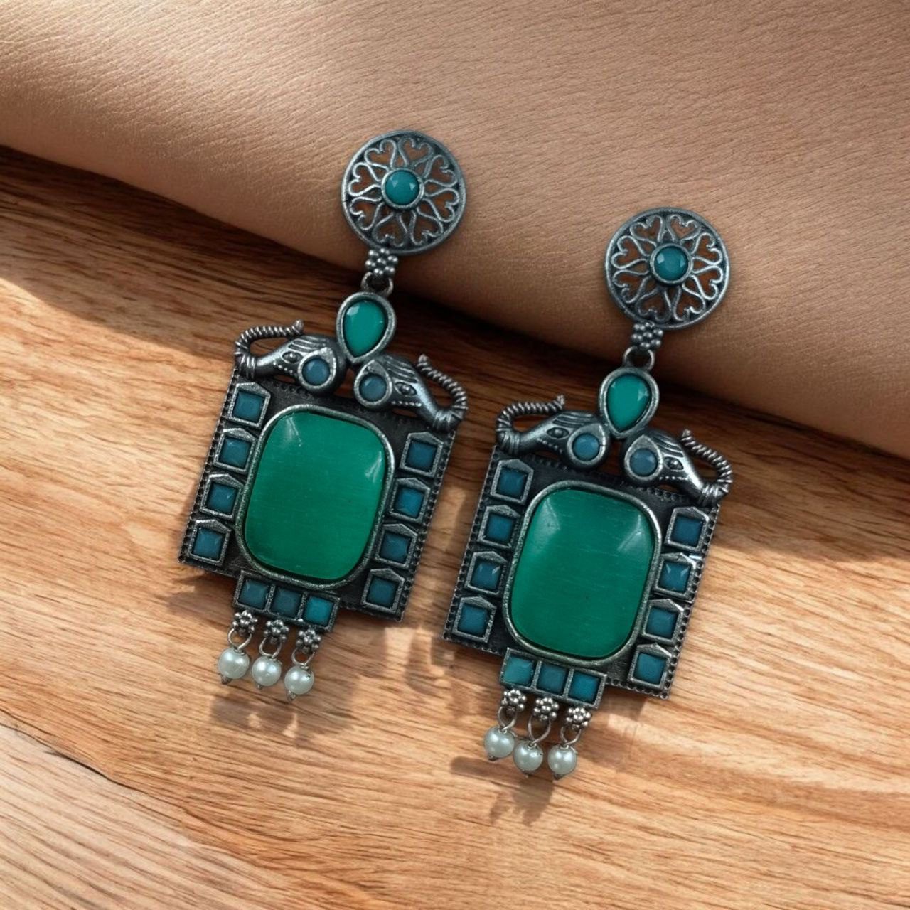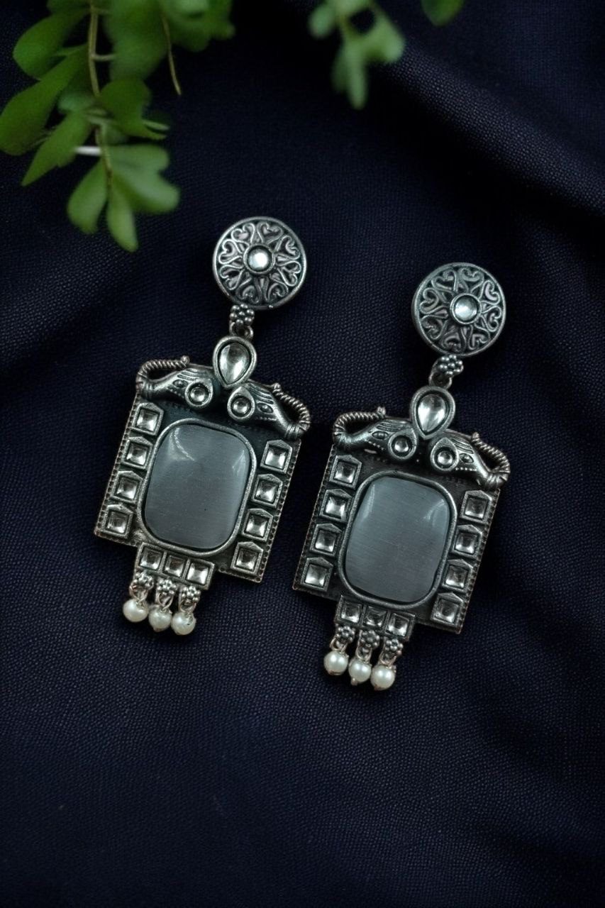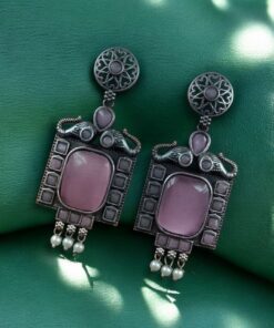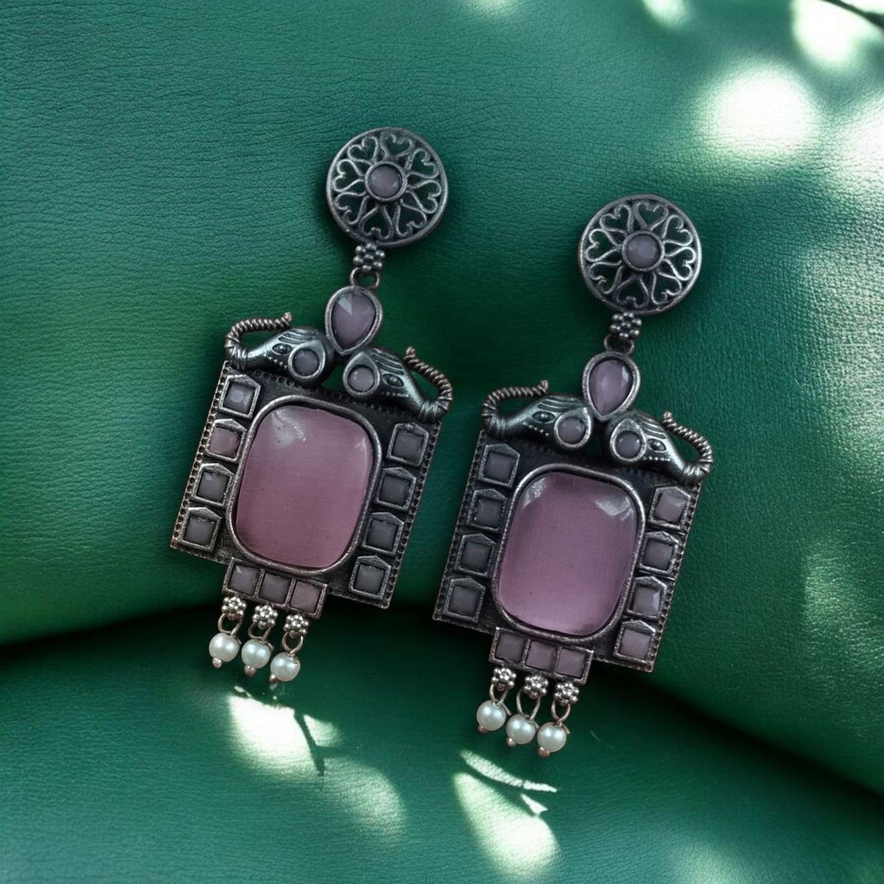Introducing our Traditional Elephant Earrings | Silver Replica Oxidized Dangler with Beautiful Monalisa Stone Jewelry, a perfect blend of timeless heritage and modern elegance. These Elephant Earrings are designed to bring a charming ethnic vibe to your jewelry collection while remaining versatile enough for everyday or festive wear.