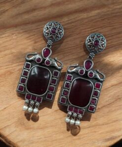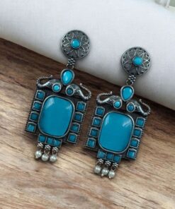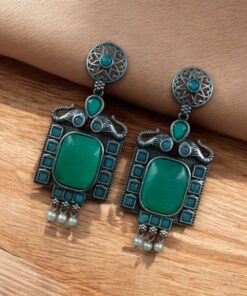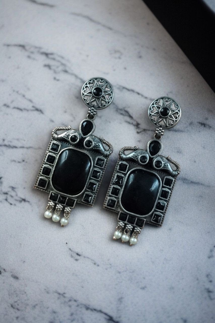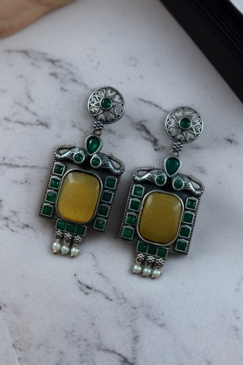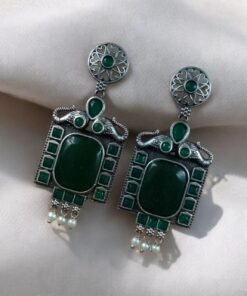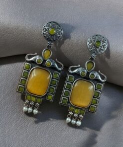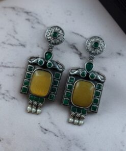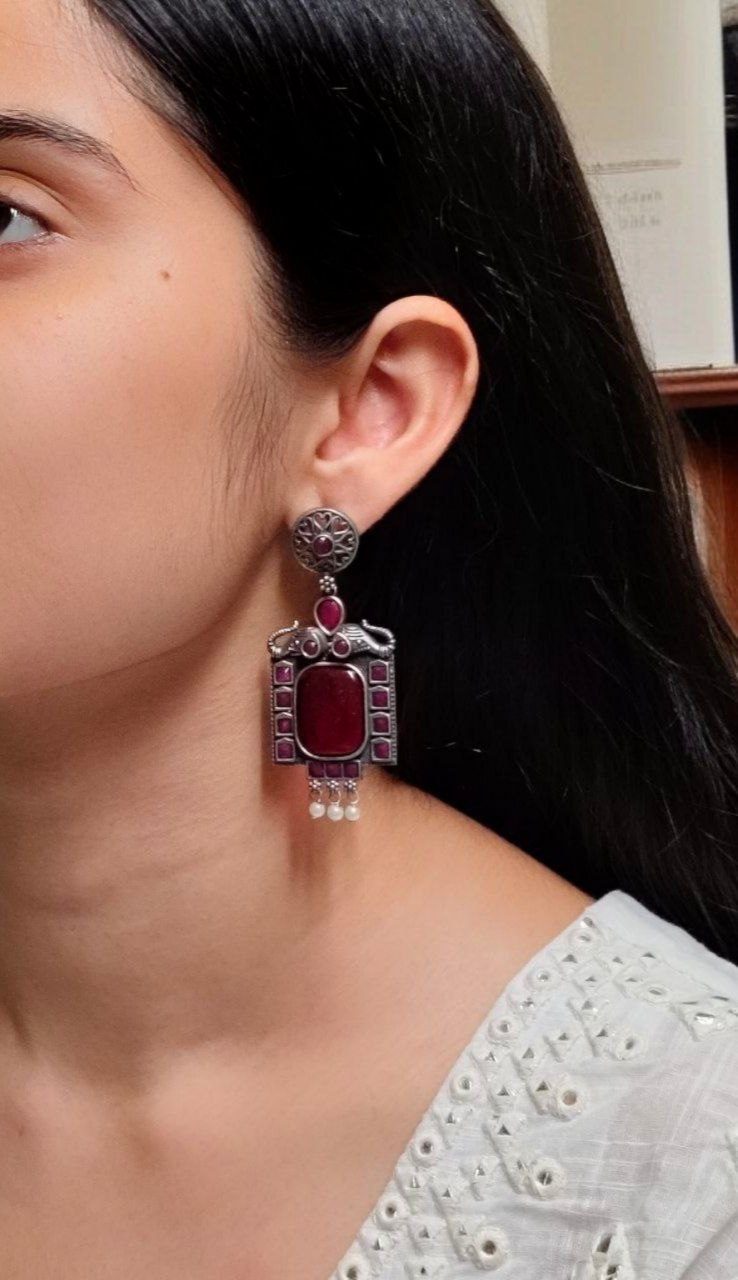 Introducing our Traditional Elephant Earrings | Silver Replica Oxidized Dangler with Beautiful Monalisa Stone Jewelry, a perfect blend of timeless heritage and modern elegance. These Elephant Earrings are designed to bring a charming ethnic vibe to your jewelry collection while remaining versatile enough for everyday or festive wear.