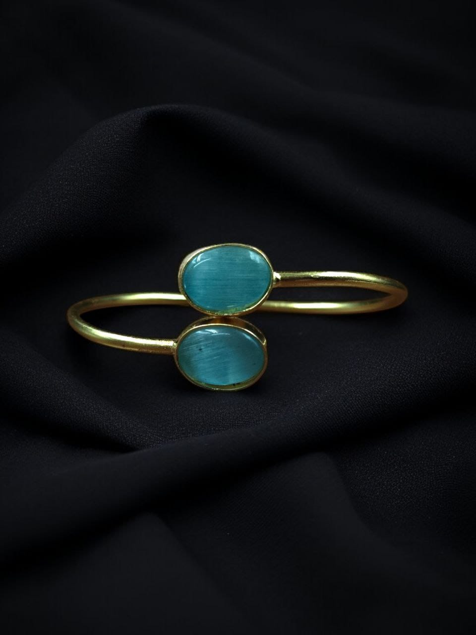 Crafted with high-quality materials, this bangle features a lustrous gold plating that gives it a rich and timeless appeal. The intricate design reflects traditional artistry, making it a perfect accessory for festive occasions, weddings, and cultural events. The Monalisa stone adds a touch of brilliance, capturing and reflecting light beautifully to enhance your overall look.