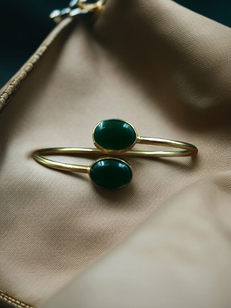 Add a touch of grace and elegance to your jewelry collection with this Traditional Ethnic Gold Plated Bangle with Monalisa Stone. Perfect for those who appreciate classic craftsmanship with a modern touch!