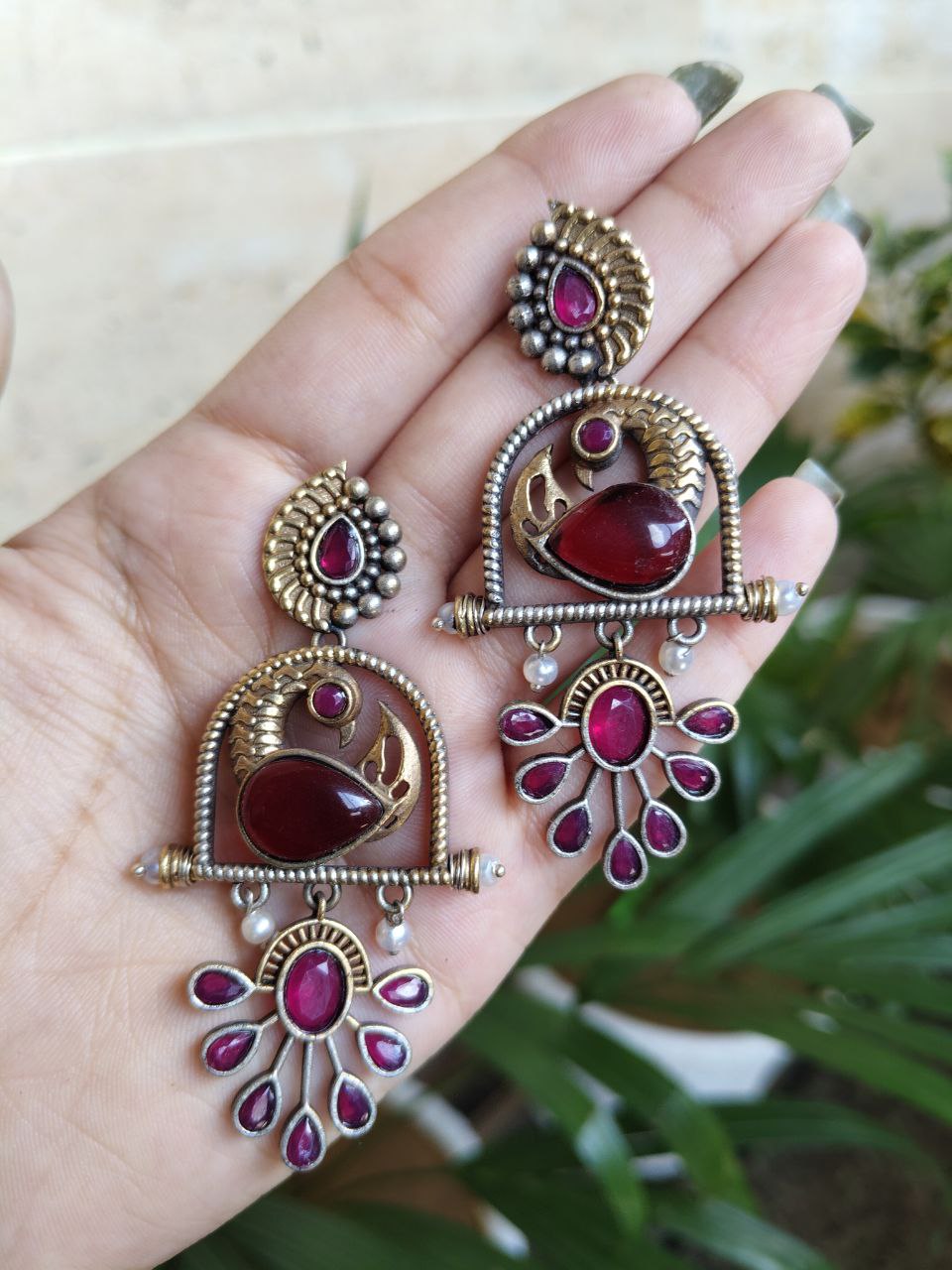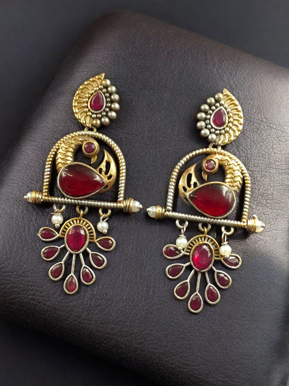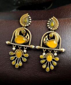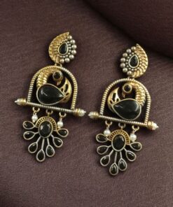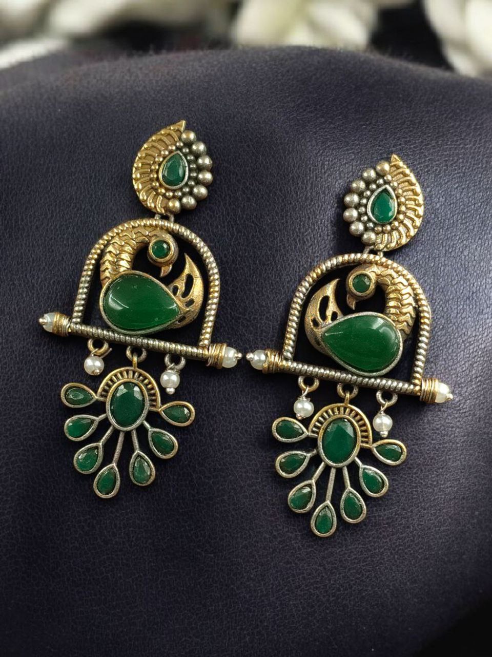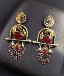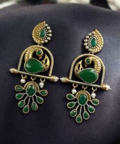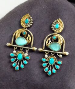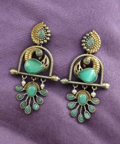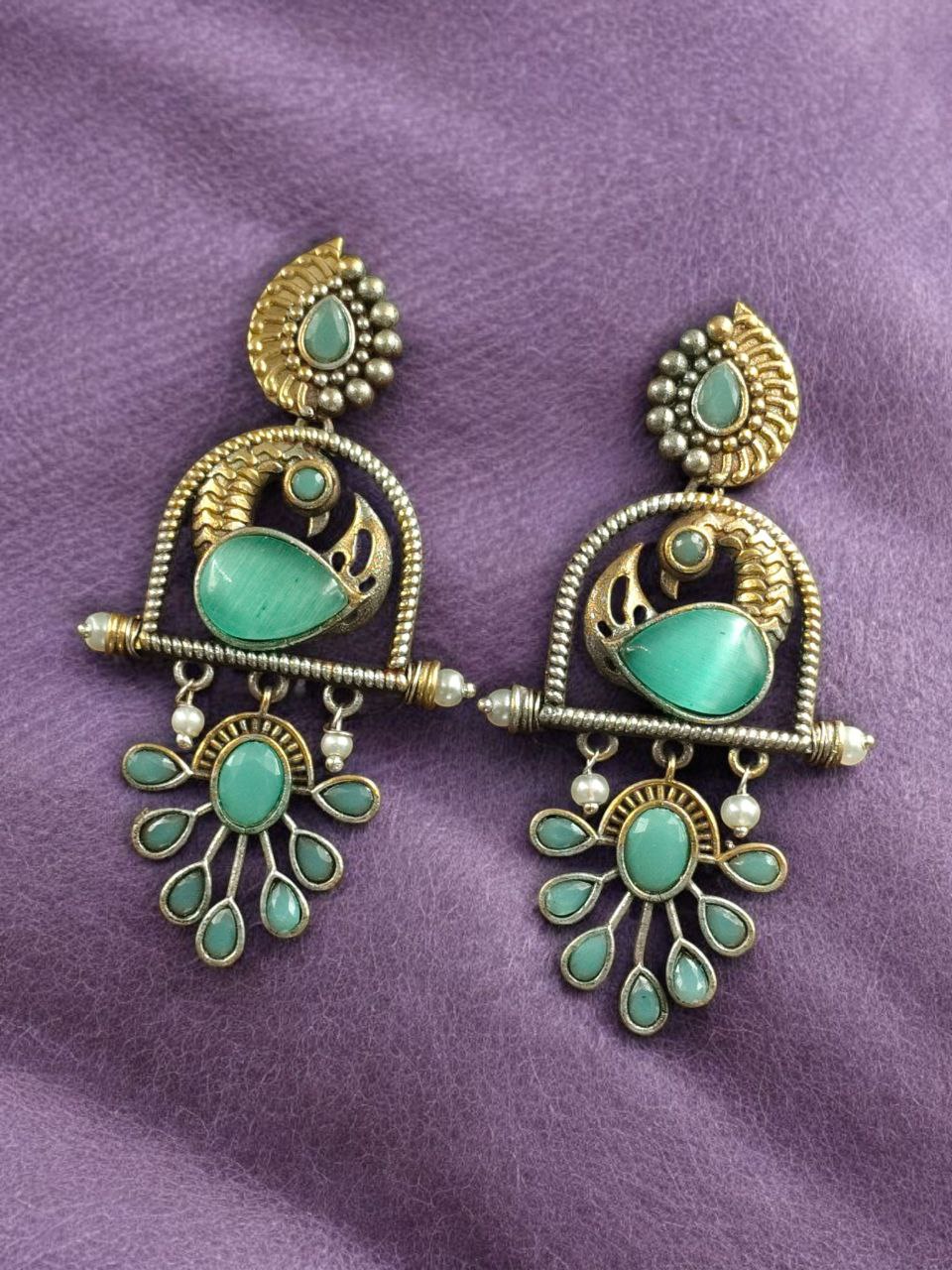 Traditional Ethnic Two-Tone Earrings | Pearl & Stone Antique Peacock Inspired Amazing Jewelry