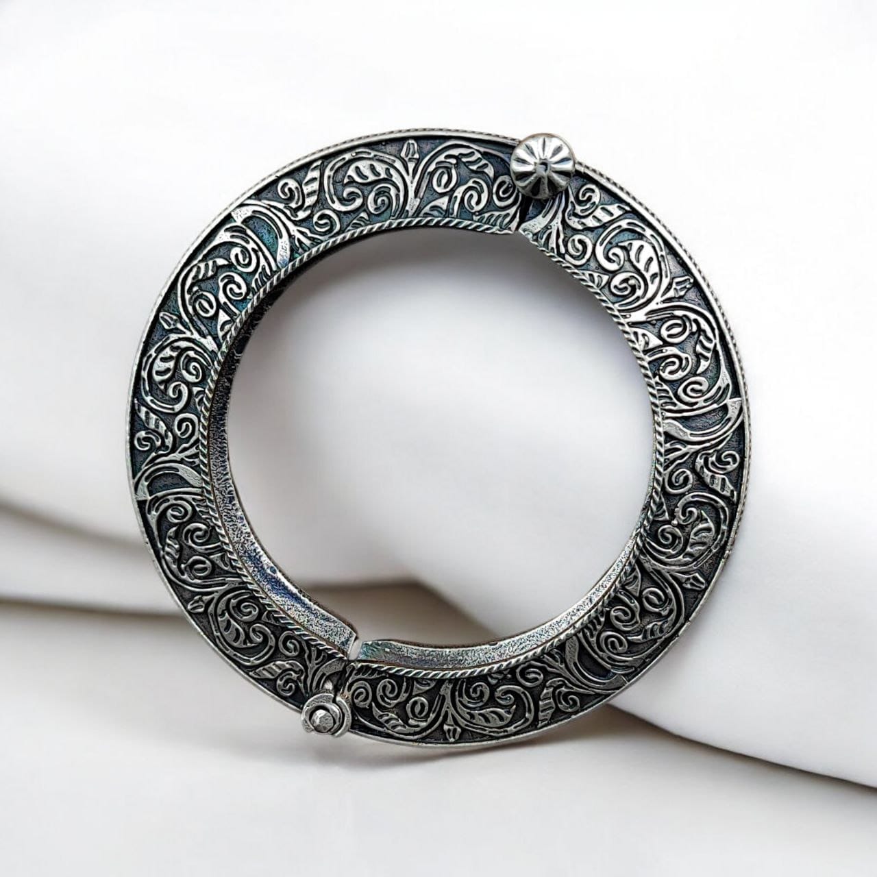 Discover the beauty of heritage with our Traditional Floral Art Bracelet, a stunning piece that celebrates the intricate artistry of Indian jewelry. This oxidized openable kada showcases exquisite floral designs, making it a perfect accessory for those who appreciate traditional craftsmanship infused with modern elegance. Ideal for both casual wear and festive occasions, this bracelet is a versatile addition to your jewelry collection.