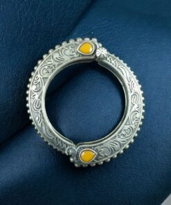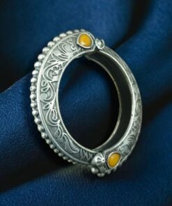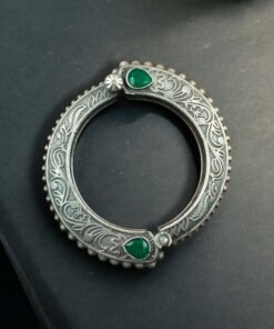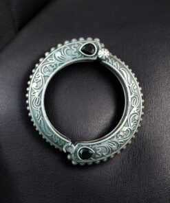 Step into the world of timeless elegance with this Traditional Floral Art Stone Oxidized Bangle, a piece that combines artistry, culture, and sophistication. Inspired by traditional Indian jewelry designs, this Bangle showcases a beautiful floral motif highlighted with stone embellishments, giving it a radiant yet subtle charm.