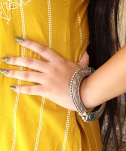 Add this Floral Art Stone Oxidized Bangle to your jewelry box to complete your collection of ethnic accessories. Its timeless design ensures it will remain a cherished piece for years to come.
