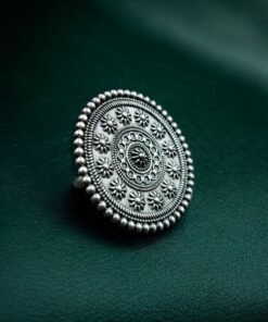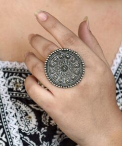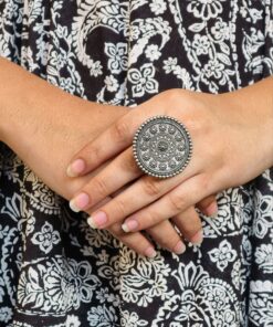 Versatile in styling, this oxidized flower ring pairs beautifully with sarees, kurtis, salwar suits, and Indo-western outfits. You can wear it alone for a clean, elegant look or combine it with other oxidized silver replica jewelry for a coordinated ethnic appearance. Its classic design makes it suitable for women and girls of all age groups.