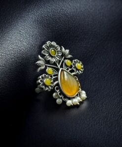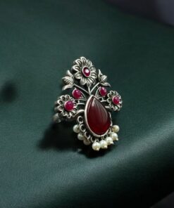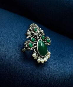 Experience the perfect blend of tradition, elegance, and fine craftsmanship with our Traditional Flower Design Ring | Silver Replica Adjustable Stone & Pearl Work Best Jewelry. This exquisite Flower Design Ring is designed for women who adore jewelry that reflects cultural beauty while offering modern convenience and timeless appeal.