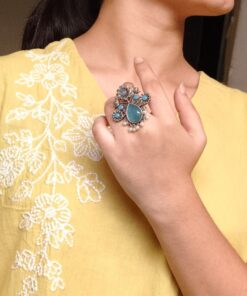 Made with high-quality silver replica plating, the ring offers a luxurious shine while maintaining an oxidized, antique-inspired touch that elevates its ethnic charm. The adjustable open-band design ensures a comfortable and secure fit for all finger sizes, making it practical for daily wear as well as special occasions. Lightweight and skin-friendly, it can be worn for long hours without irritation.