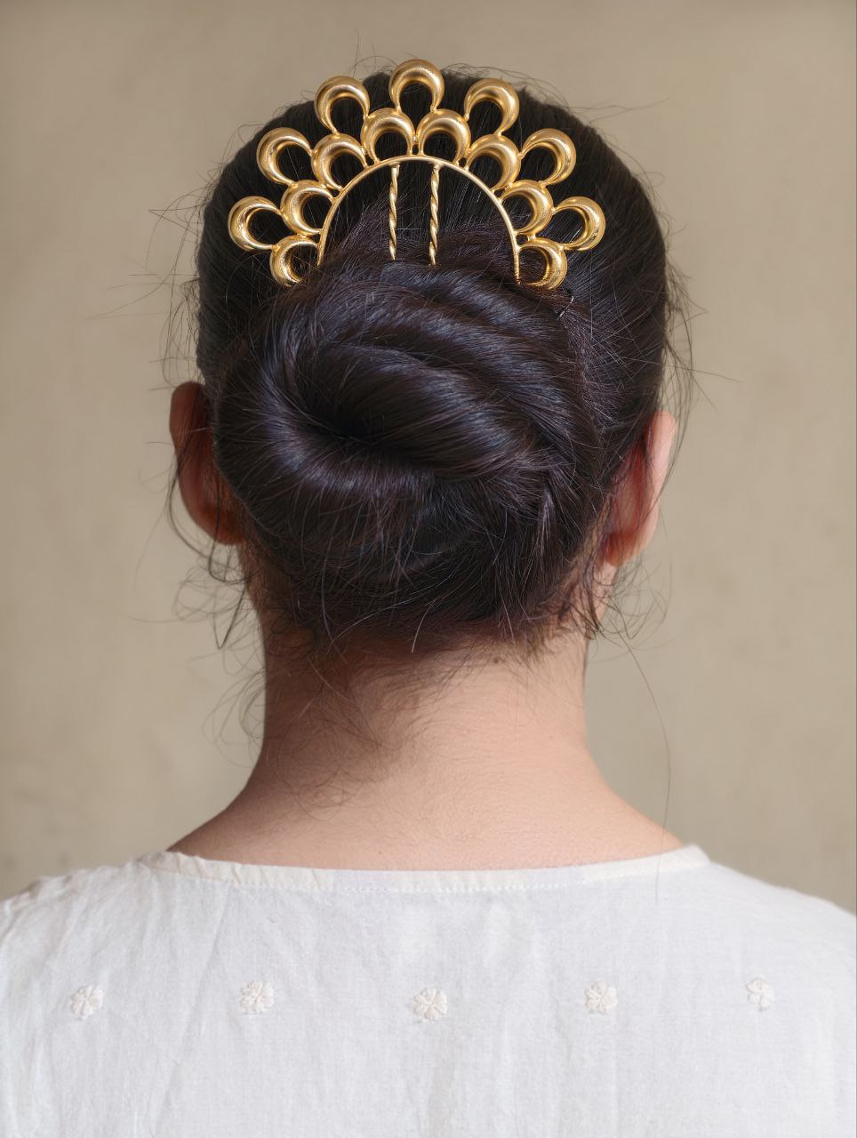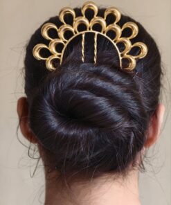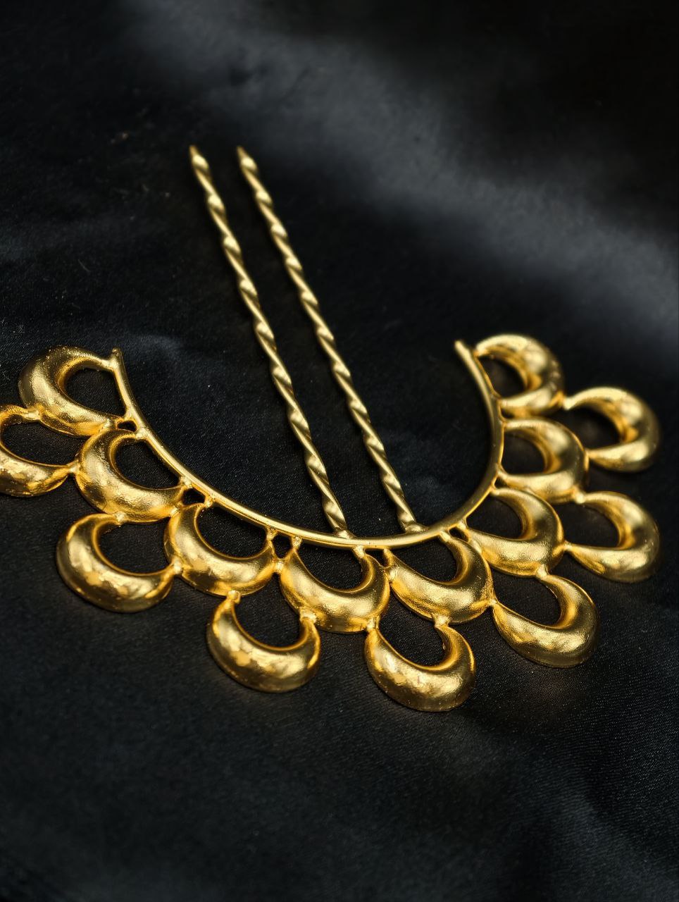 Ethnic Gold Plated Half Moon Juda Pin | Elegant Hair Jewelry for Women