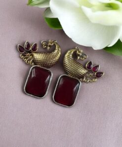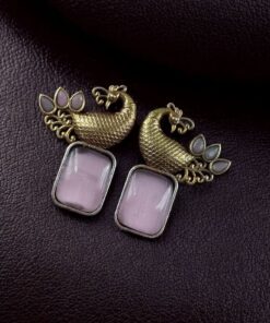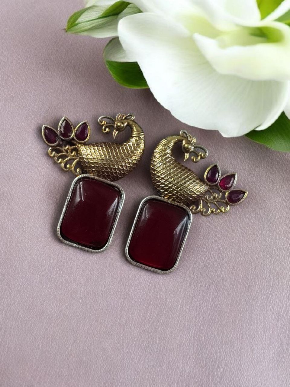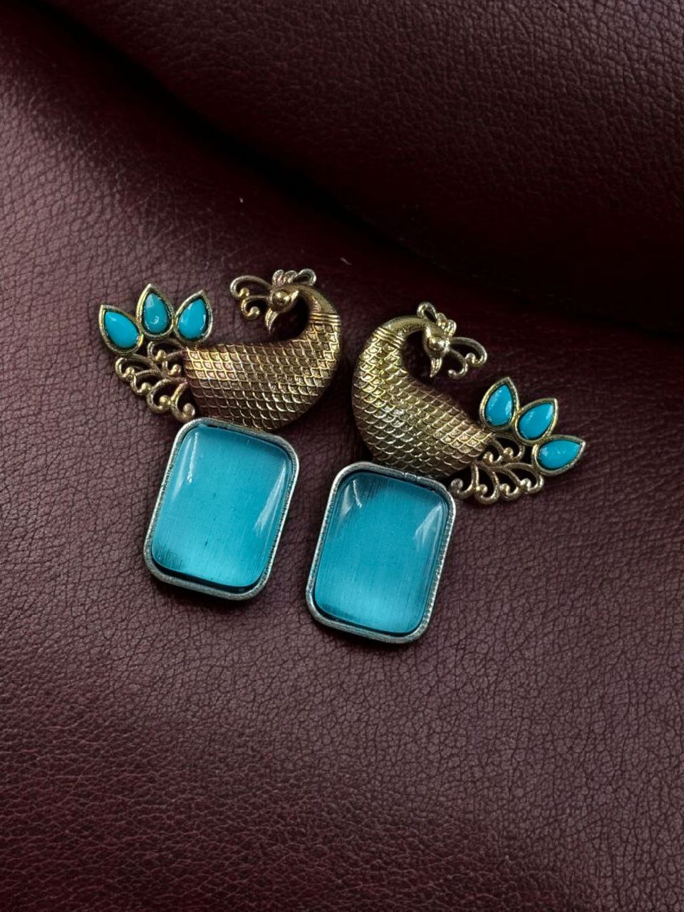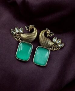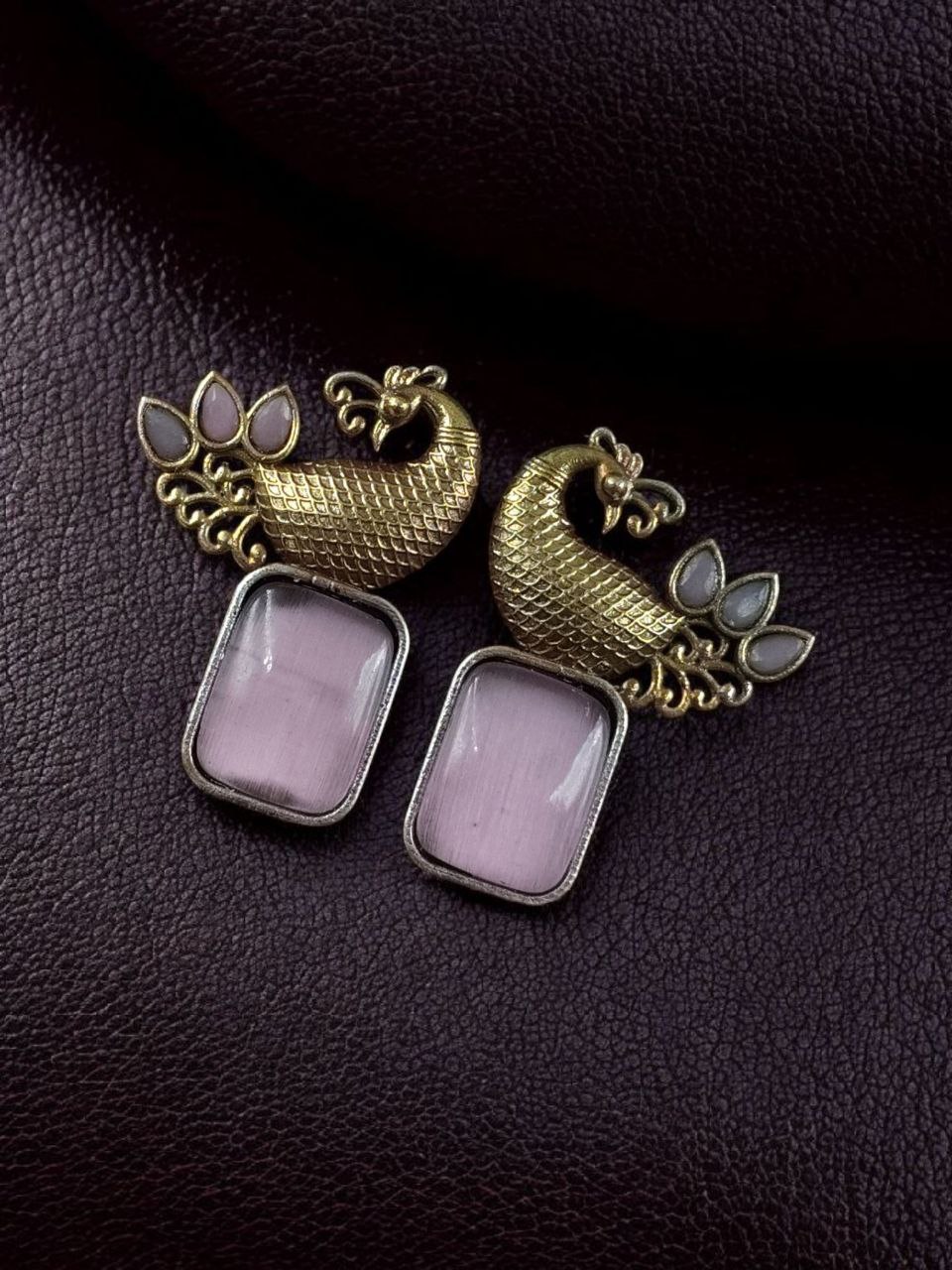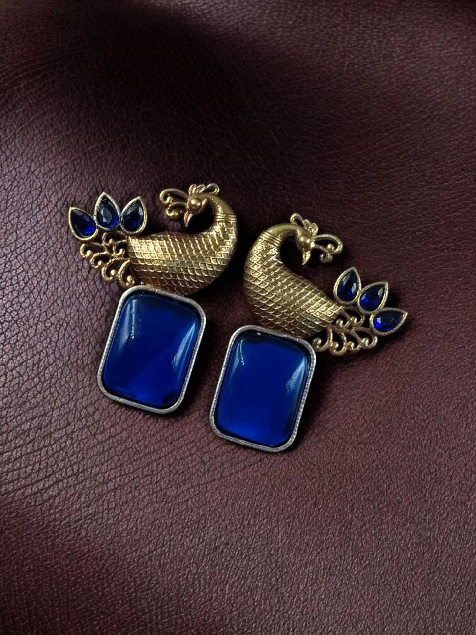 Traditional Look alike Two-Tone Peacock Earrings | Ethnic Stone Work Perfect Jewelry for Women