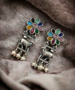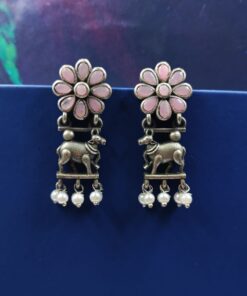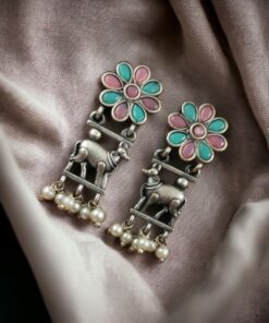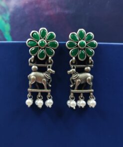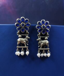 Embrace the fusion of tradition and contemporary fashion with our Traditional Nandi Earrings in oxidized silver. These earrings are more than just an accessory; they are a celebration of heritage, artistry, and timeless elegance. Add them to your jewelry collection today and experience the charm and grace they bring to your style.