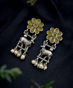 Embrace the fusion of tradition and contemporary fashion with our Traditional Nandi Earrings in oxidized silver. These earrings are more than just an accessory; they are a celebration of heritage, artistry, and timeless elegance. Add them to your jewelry collection today and experience the charm and grace they bring to your style.