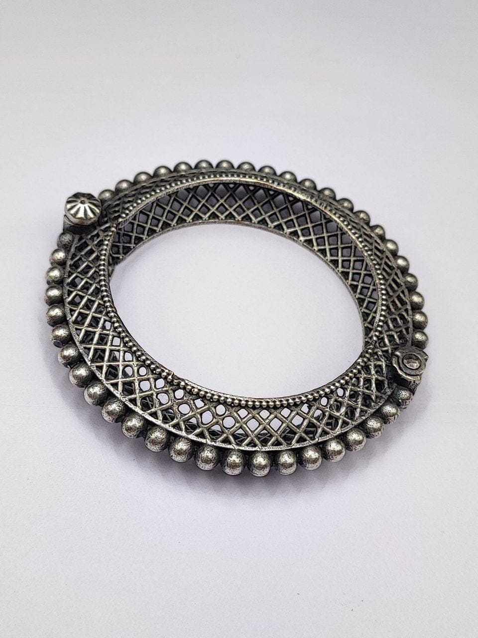 Handcrafted Unique Design Oxidized Openable Bangle | Stone Work Silver Replica Jewelry