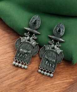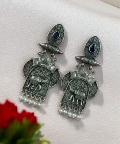 Celebrate tradition in style with the Traditional Oxidized Elephant Earrings?a stunning piece that captures the spirit of cultural elegance and modern-day fashion.