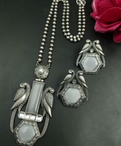 Step into a world of royal elegance with our Traditional Parrot Design Necklace Set | Monalisa Stone Ethnic Party Wear Best Designer Jewelry, a masterpiece created for women who appreciate artistic heritage and modern glamour in one statement accessory. Inspired by traditional Indian motifs, the charming parrot design symbolizes love, beauty, and celebration, making this necklace set a perfect pick for grand occasions.