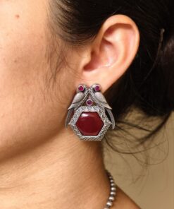 The necklace sits gracefully on the neckline, enhancing your facial features while complementing your ethnic attire. Paired with matching earrings, this set completes your look effortlessly, saving you the trouble of searching for coordinating accessories. Despite its bold appearance, the set is lightweight and comfortable for long wear, making it ideal for extended celebrations.