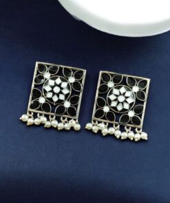 Designed for women who appreciate heritage-inspired jewelry, these earrings reflect skilled craftsmanship and timeless appeal. The oxidized silver plated coating ensures durability and long-lasting shine when properly cared for, while the meenakari and pearl detailing make them stand out with artistic charm.
