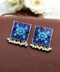 Add a touch of traditional elegance to your jewelry collection with the Traditional Silver Plated Meenakari Stud Earrings, beautifully finished with an oxidized look and delicate pearl work. Inspired by classic Indian craftsmanship, these earrings showcase artistic detailing that reflects rich cultural heritage while remaining stylish and wearable for modern fashion.
