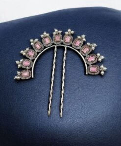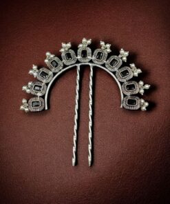 Add a touch of traditional elegance to your hairstyle with the Traditional Silver Plated Square Shape Juda Pin, beautifully adorned with pearl and stone work. Designed to enhance classic Indian hairstyles, this handcrafted hair accessory reflects rich cultural artistry while offering a refined and graceful look for modern women.
