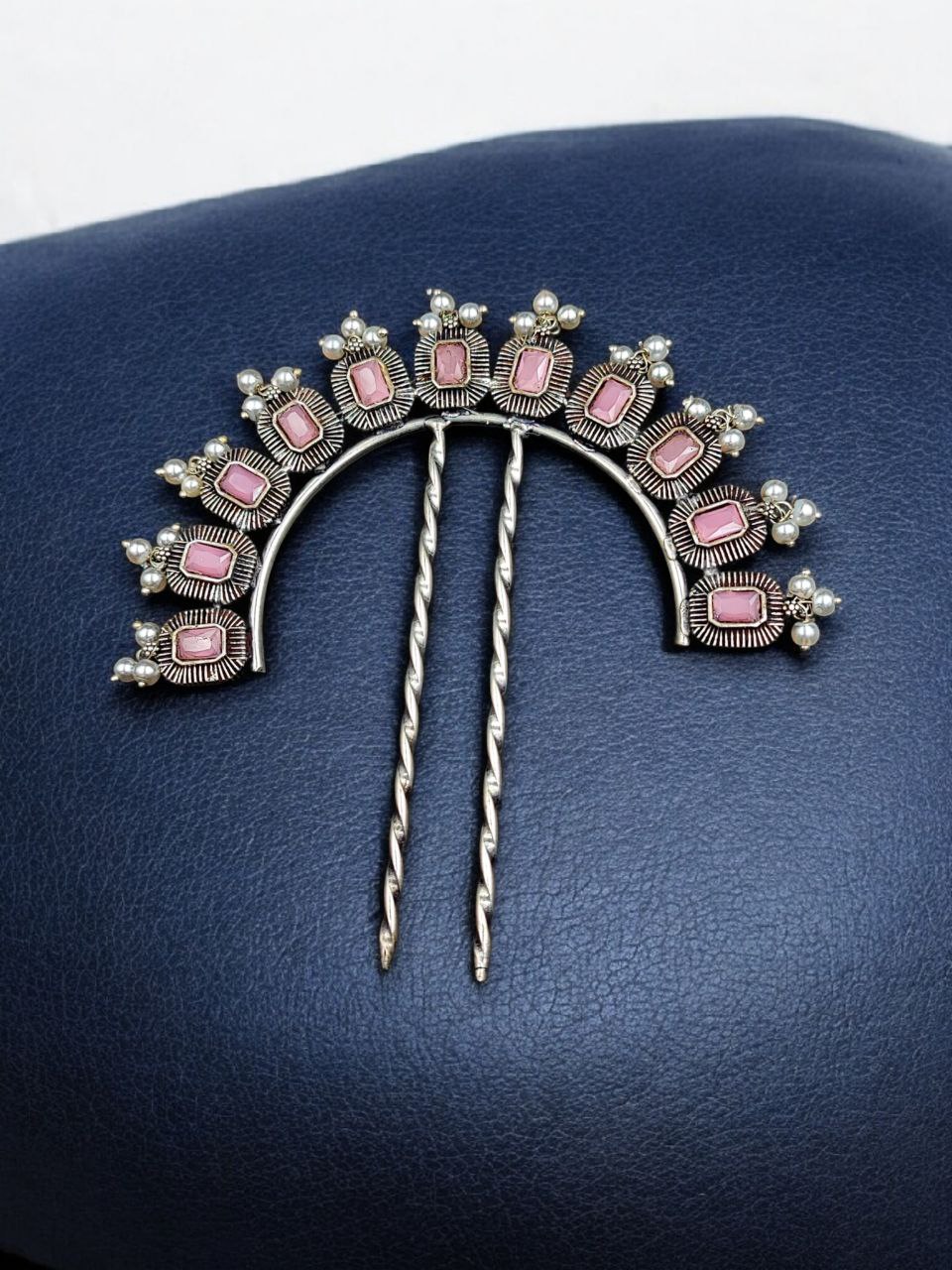 Add the Traditional Silver Plated Square Shape Juda Pin to your collection and enjoy the perfect combination of beauty, craftsmanship, and functionality. With its elegant square design, shimmering pearl accents, and sparkling stone work, this hair accessory is a must-have for anyone who loves traditional hairstyles with a stylish twist.