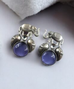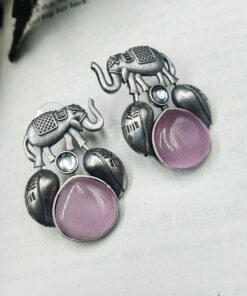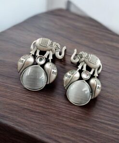 Traditional Silver Replica Elephant Design Earrings – Best Monalisa Stone Stud