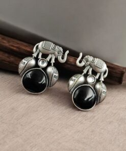 Traditional Silver Replica Elephant Design Earrings – Best Monalisa Stone Stud