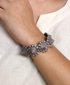 Traditional Silver Replica Kada | Oxidised Bangles | Unique Free Size Bracelet