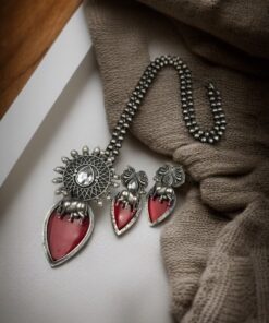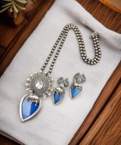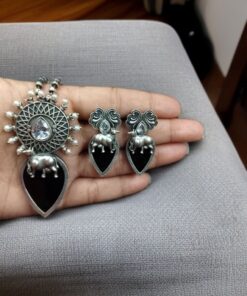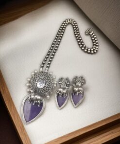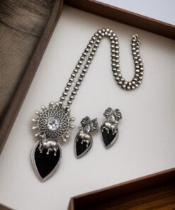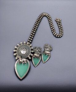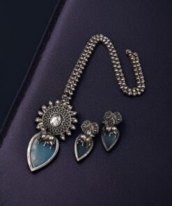 This oxidized silver necklace offers the charm of authentic silver without the high price tag. The antique silver-tone finish provides a vintage appeal, making it an excellent choice for traditional necklace sets. The necklace is designed to give you a luxurious feel while maintaining affordability and durability.