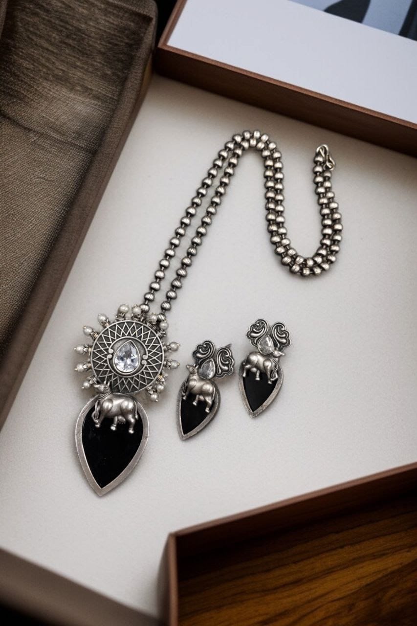 Looking for a unique gift for a loved one? This silver replica Nandi Necklace Set?makes a perfect choice for birthdays, anniversaries, weddings, and festive gifting. Its timeless appeal and cultural significance make it a cherished addition to any jewelry collection.